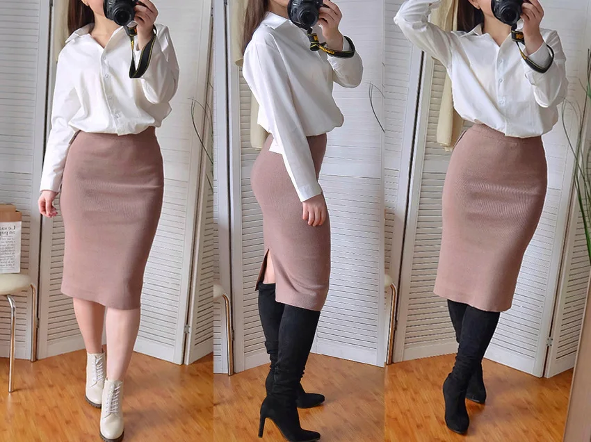 Трикотажная юбка- карандаш Классная юбка на зиму- весну. Плотный, мягкий трикотаж. На выбор 6 расцветок и 9 размеров! У меня цвет Khaki. На талию 65 и бедра 99 брала размер М. Сел шикарно. Идеально по фигуре. На рост 173 длина чуть ниже колен. Материал плотный, но хорошо тянется. Теплый, но не душный. Разрез сзади приличной длины. Угол хорошо обработан, не распускается. Резинка на талии широкая, не давит, не перетягивает живот. Швы ровные, лишних ниток нет, фирменные бирки магазина. Доставка около 2 недель. Заказ упакован в почтовый пакетч запаха при распаковке не было.