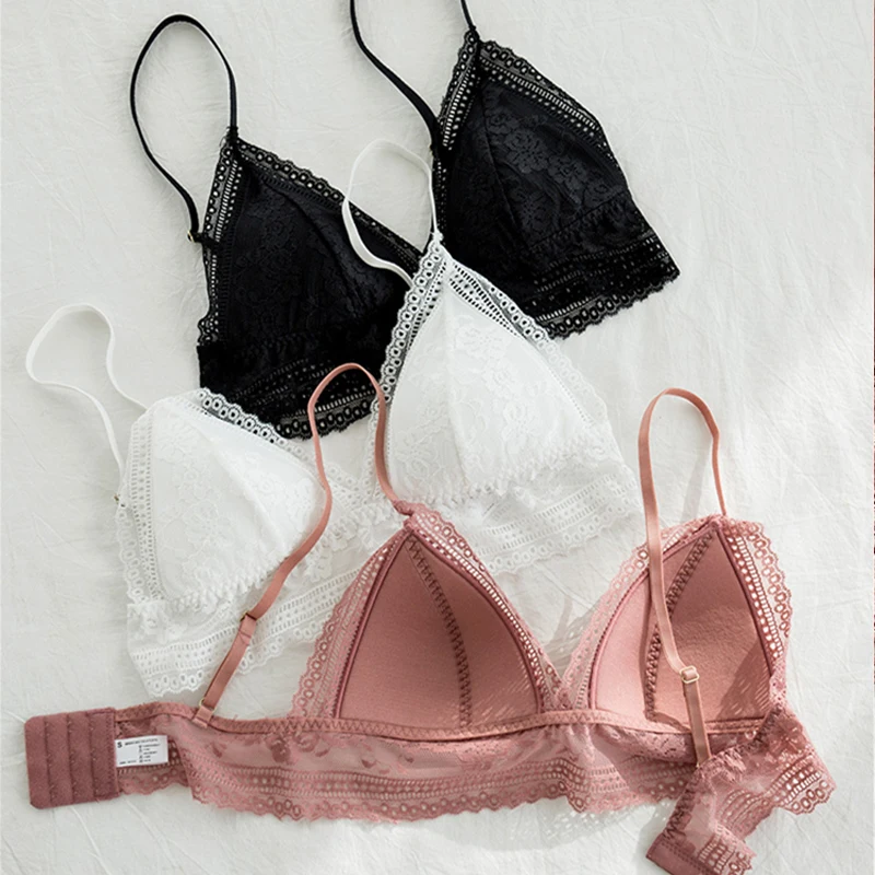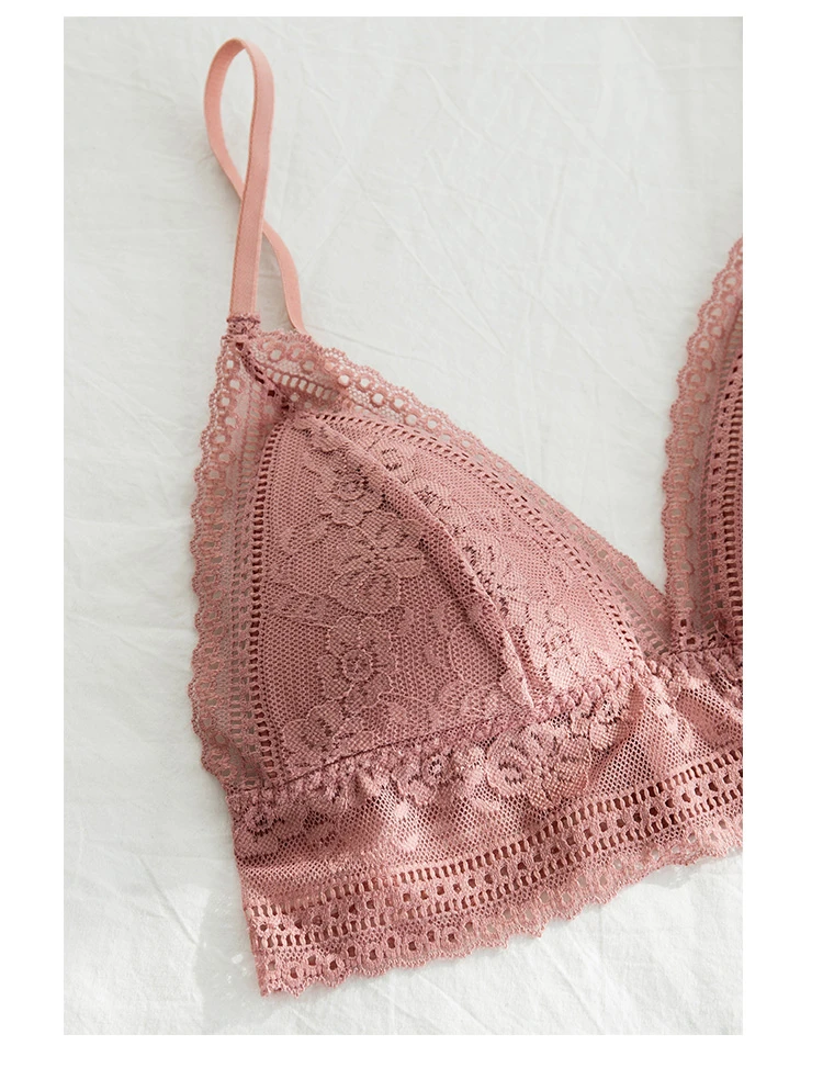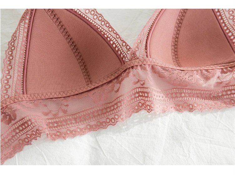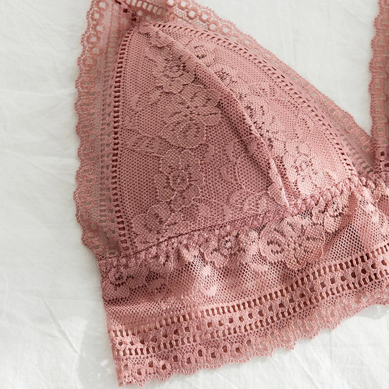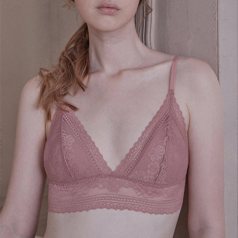 Бюстгальтер женский кружевной бесшовный с треугольными чашками и глубоким V-образным вырезом
