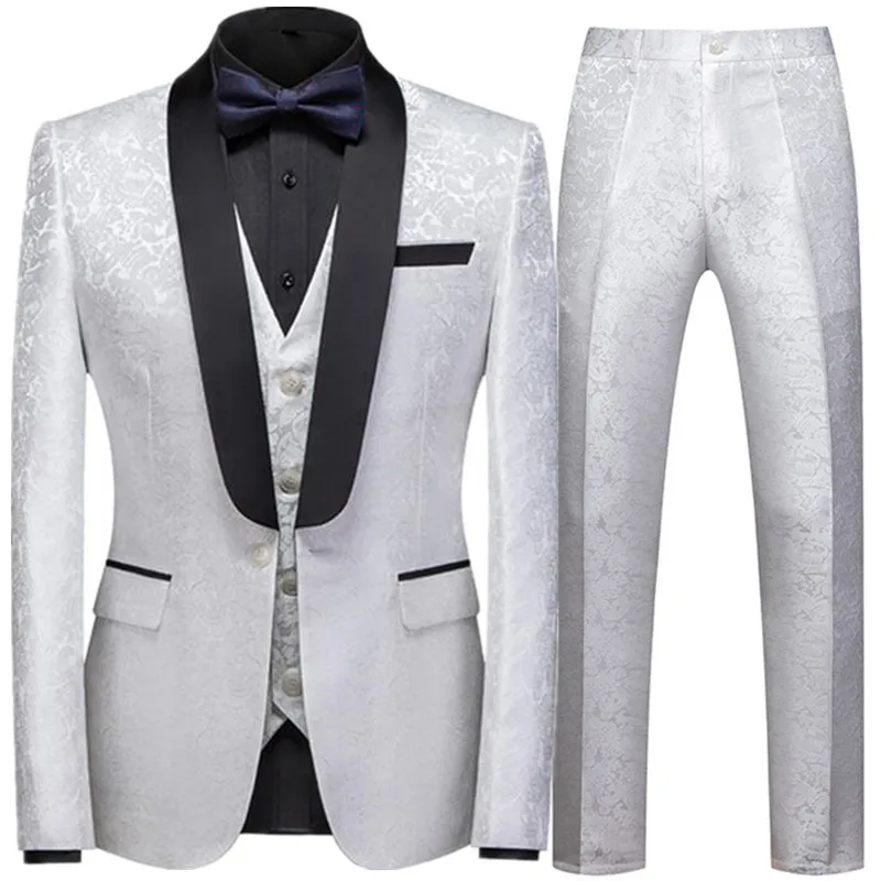 Весна-Осень 2022, мужской повседневный деловой костюм с цветочным принтом, комплект из трех предметовмужская куртка, брюки, жилет, брюки, жилет