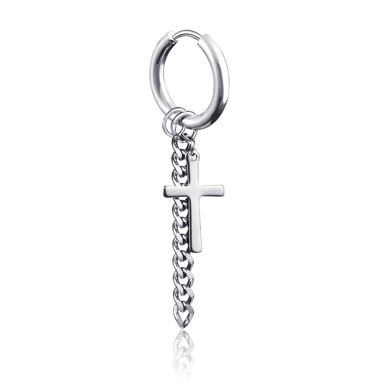 Модные корейские серьги KPOP для мальчиков из нержавеющей стали длинная цепочка с крестом для мужчин и женщин ювелирные изделия унисекс в стиле рок панк для вечеринки подарочные аксессуары