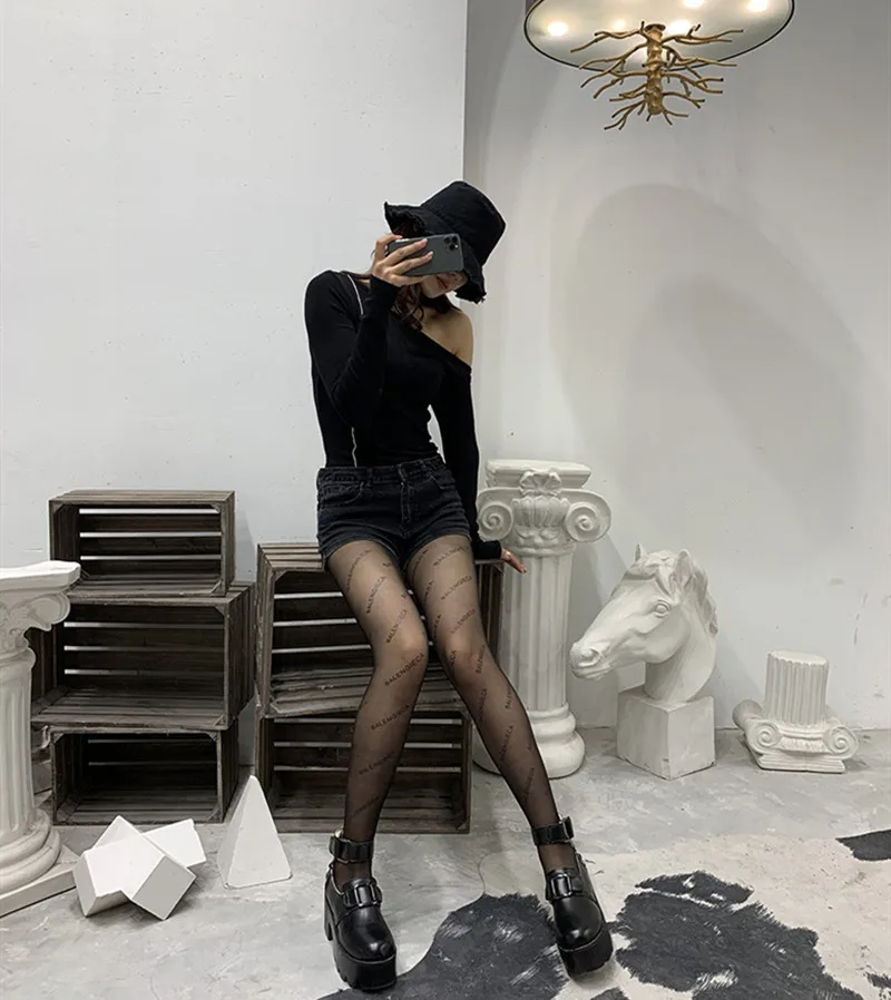 Колготки женские DOIAESKV, черные, сетчатые, с принтом, с узором, чулки для танцев