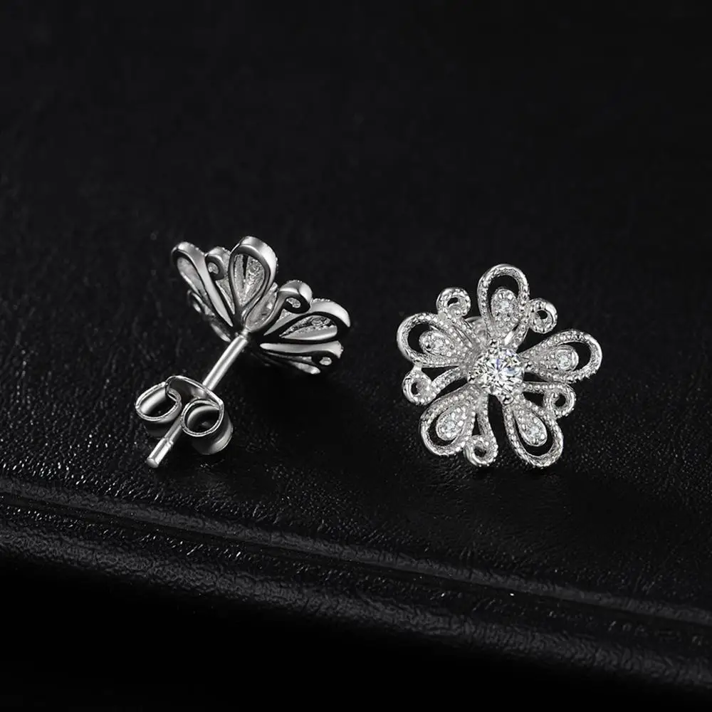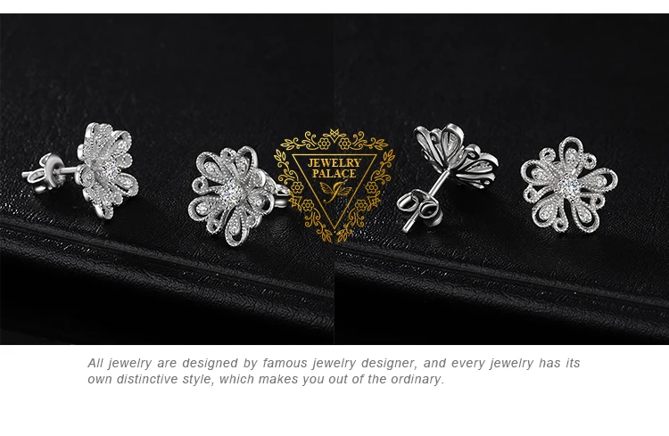 Вдохновленный цветок, эти серьги в ретро стиле, украшены блестками фианит в крапановая закрепка, В качестве центрального камня. Цветок филигранные граненые и milgrain деталей выделяют