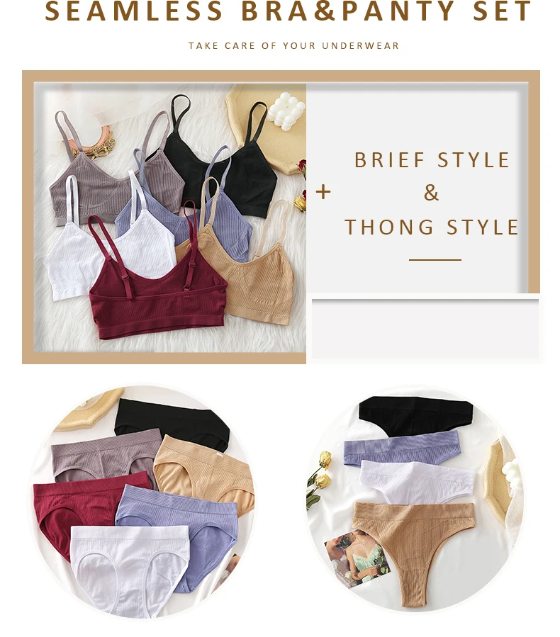 Комплект женского нижнего белья, бесшовный укороченный топ и трусы, пикантные стринги для фитнеса, однотонный комплект с бюстгальтером, трусики, женское нижнее белье, S-XL
