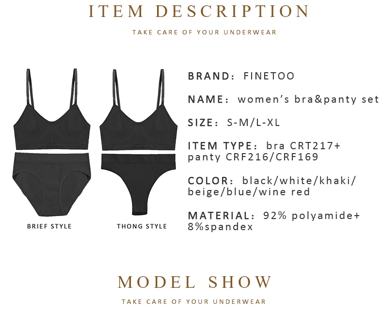 Комплект нижнего белья для женщин FINETOO, мягкий бюстгальтер с мяг...