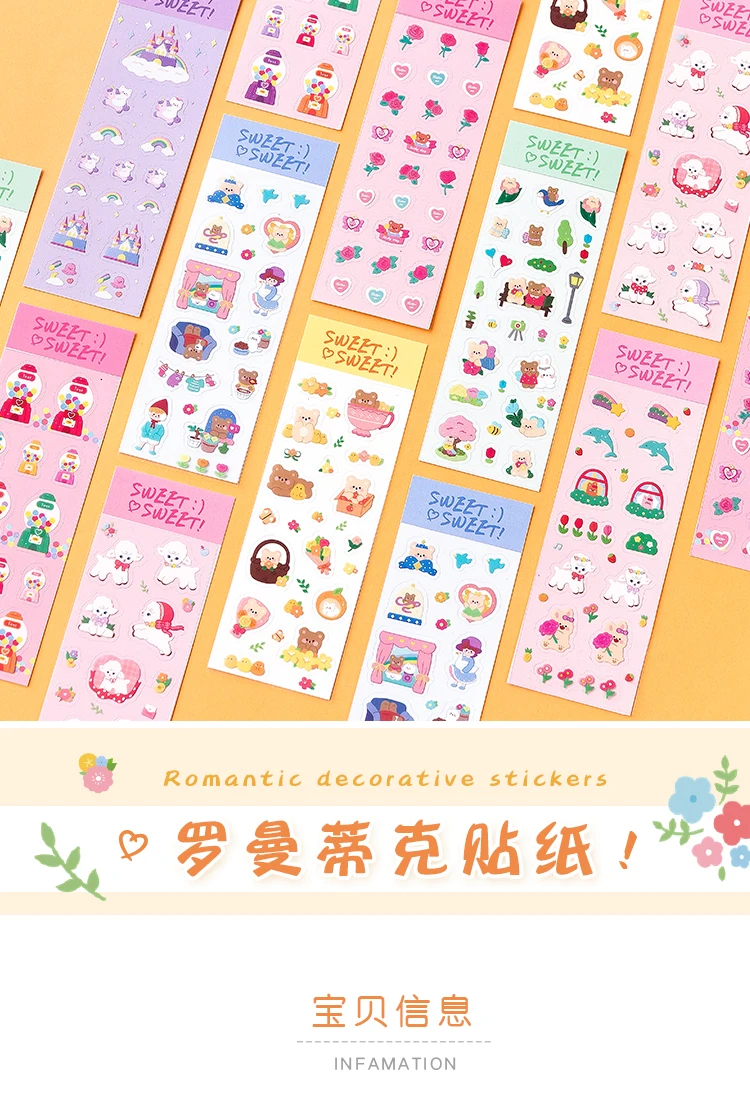 Декоративная лента из ПВХ Mohamm, 1 лист, романтическая серия, креативные товары для скрапбукинга, канцелярские товары для школы