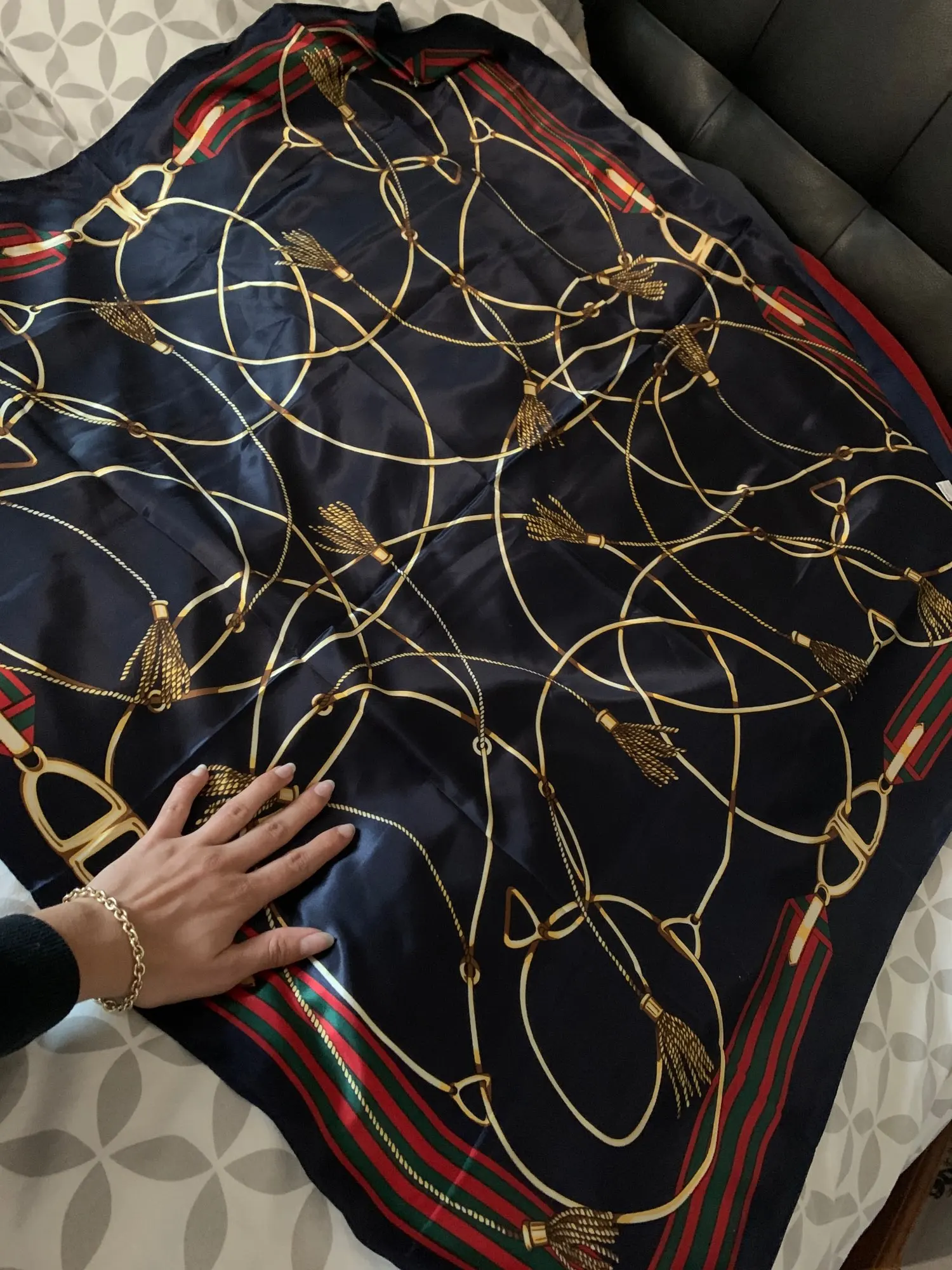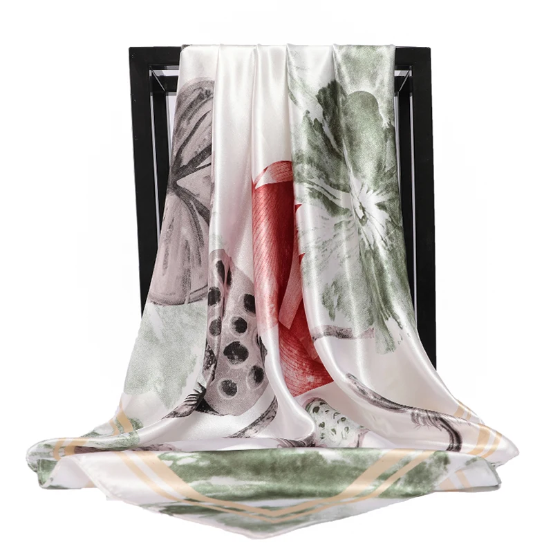 Новинка 2022 г., женский шелковый шарф 90*90 см, Женская Бандана с принтом головы, квадратный платок, шаль, парео, глушитель, платок, хиджаб
