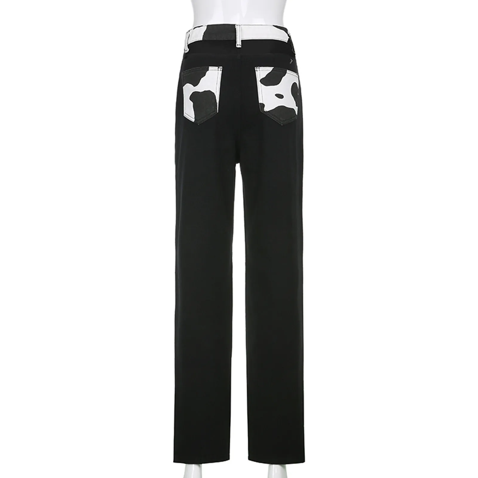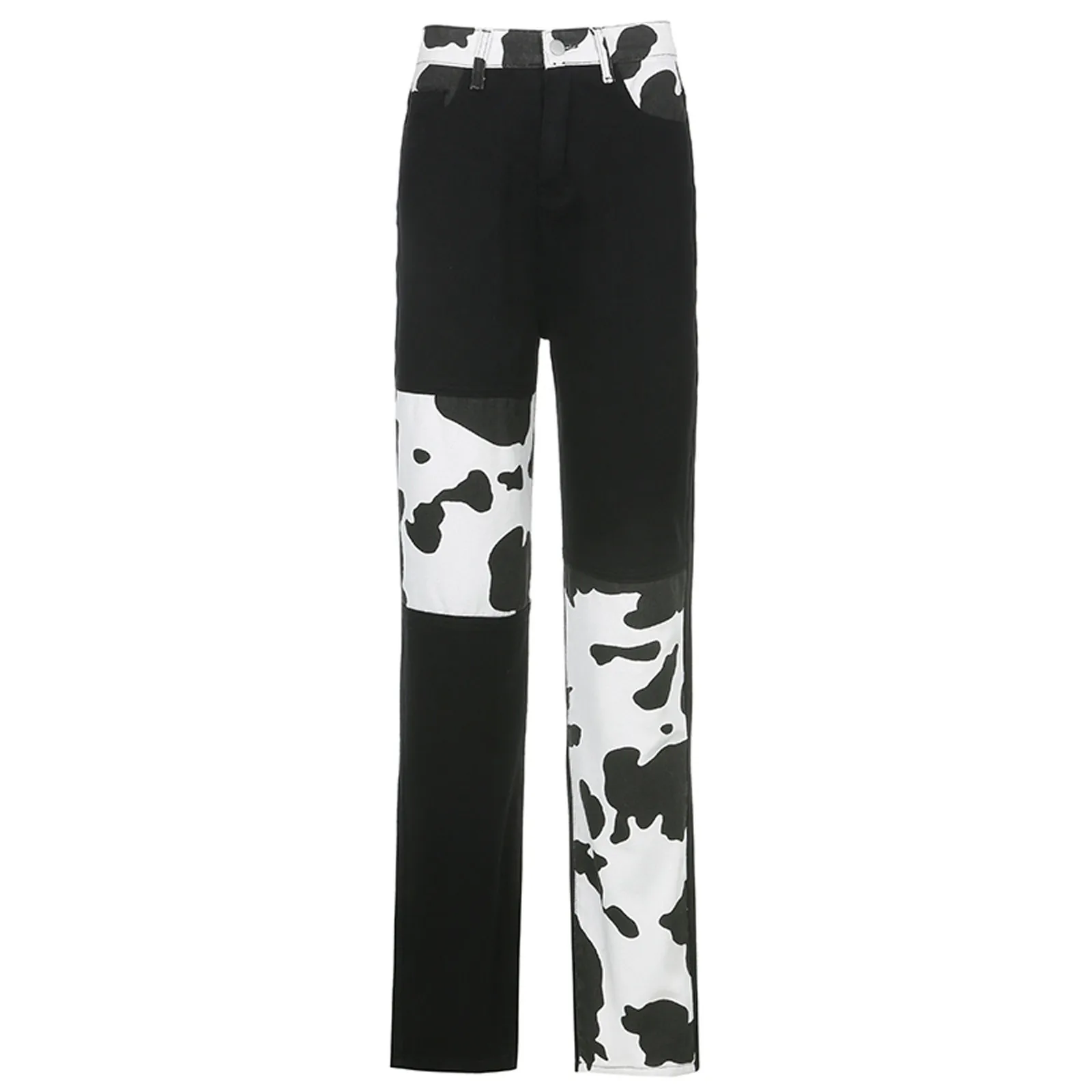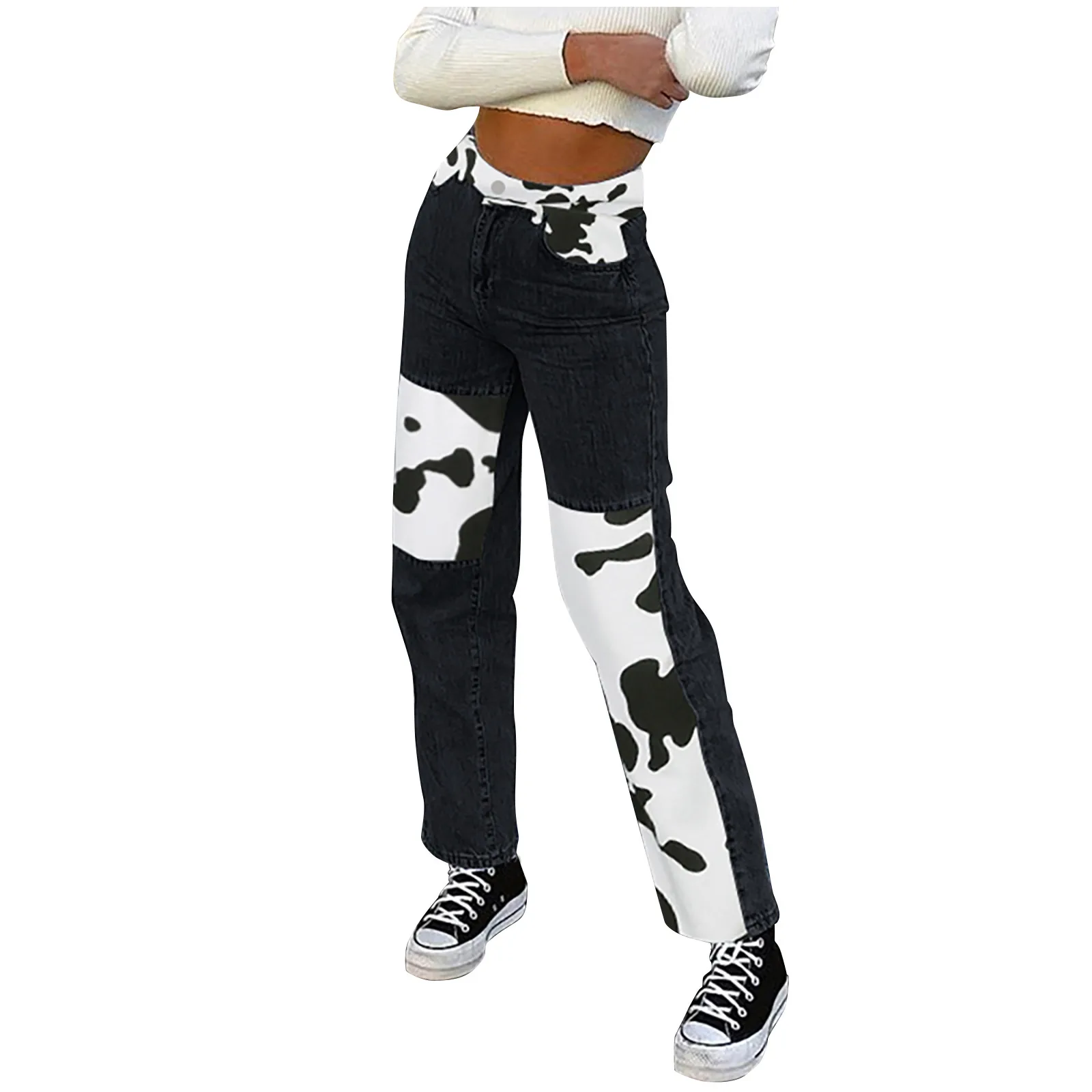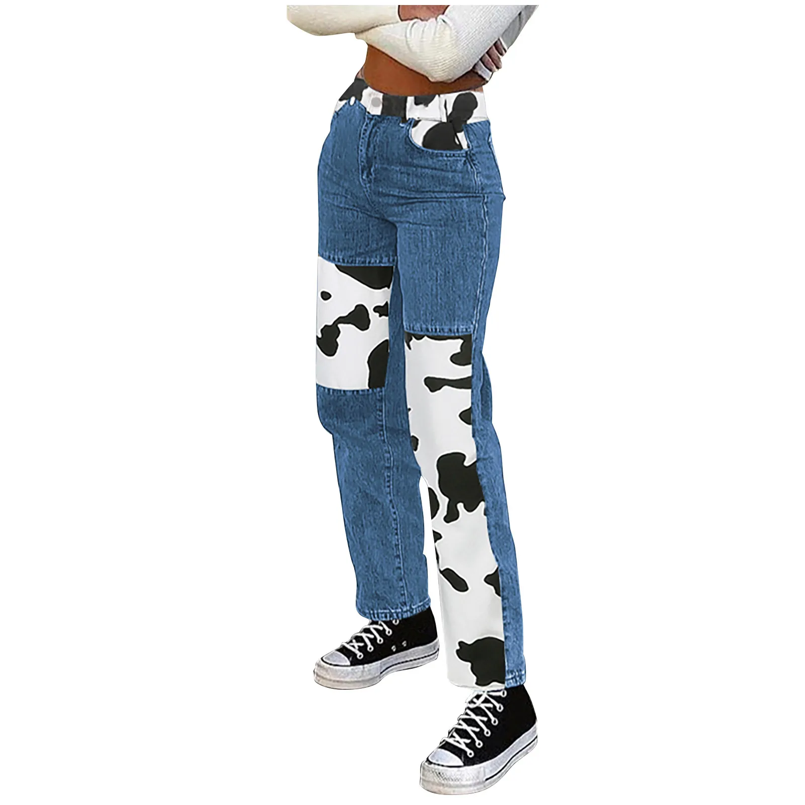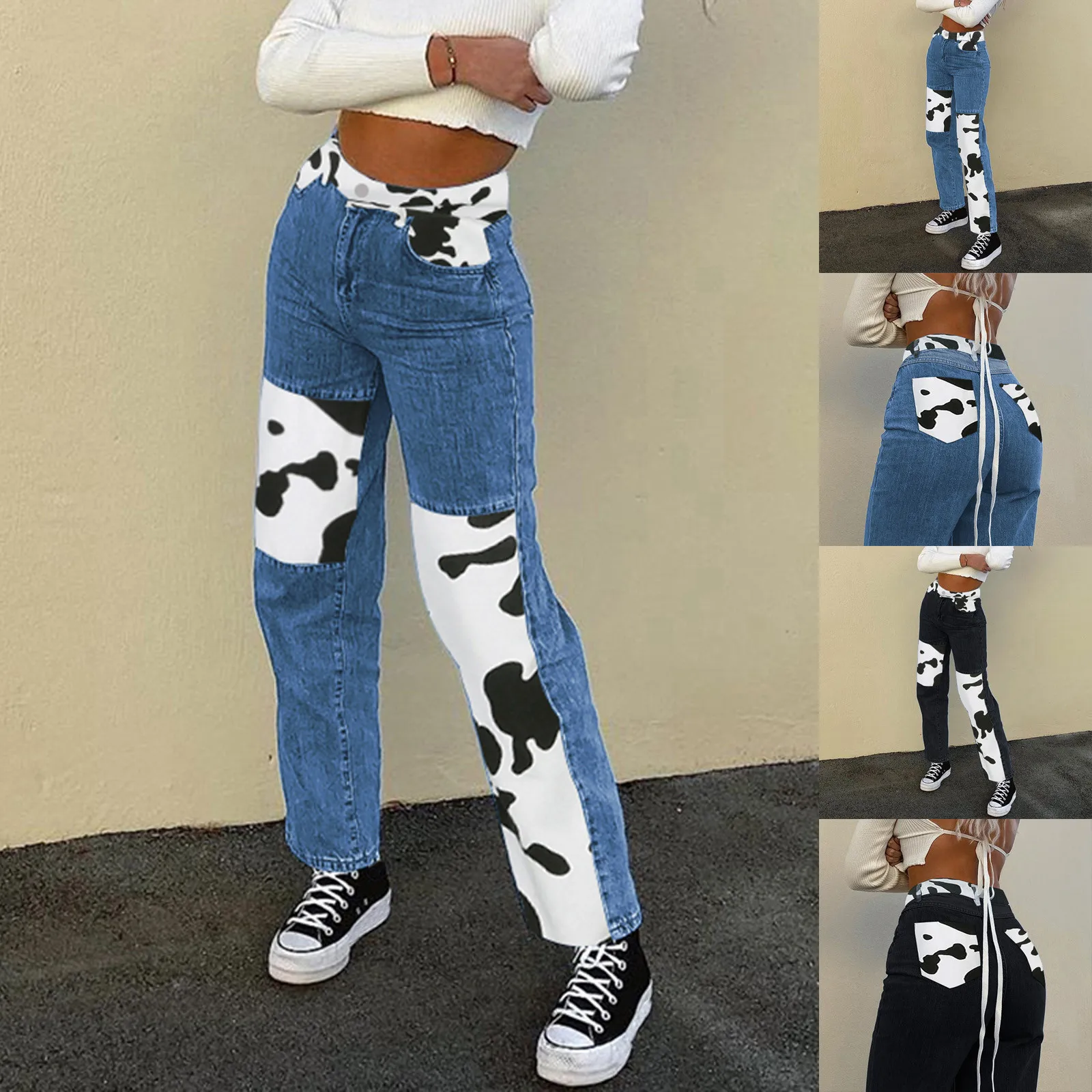 Женские модные повседневные узкие джинсы с коровьим принтом