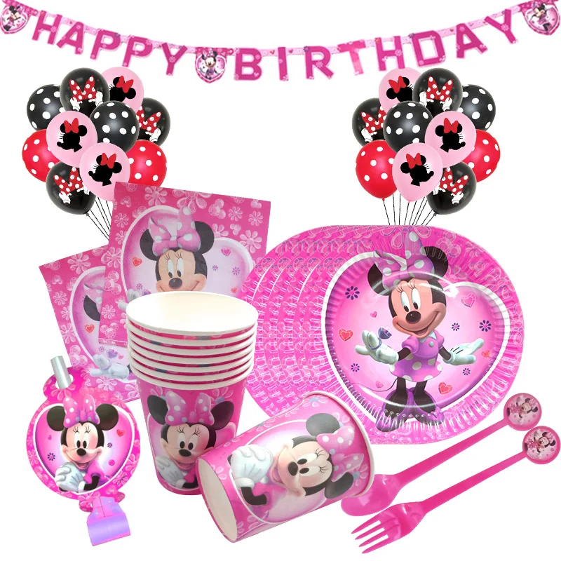 Набор одноразовой посуды для дня рождения девочки, тема Дисней Минни Мауса