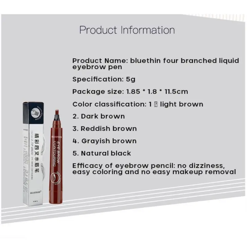 Жидкий карандаш для бровей водонепроницаемый карандаш для бровей 4 вилка наконечник тонкий эскиз брови татуировки ручка цвета жидкой воды карандаш для бровей