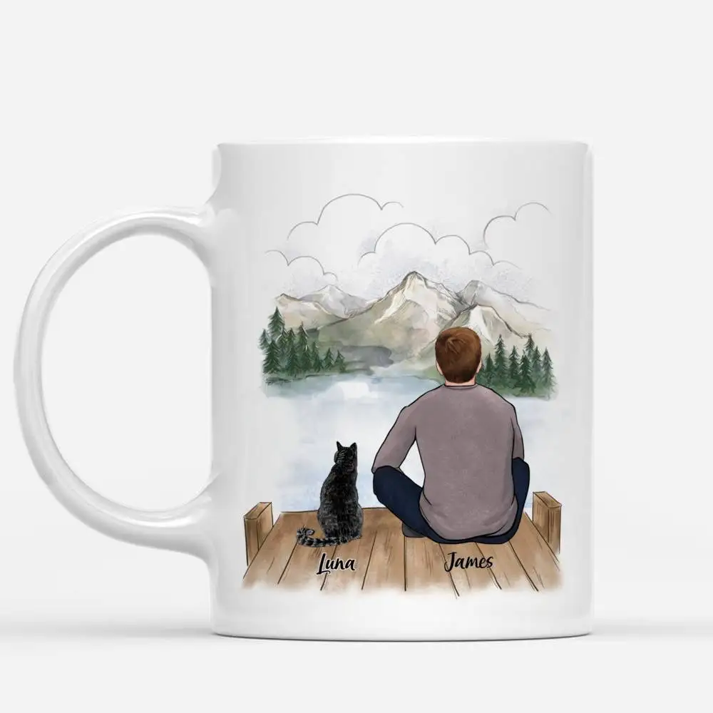 Девушка и кошка, мужчина, пара и питомец, персонализированная кружка, кофейные чашки, подарок для семьи, сделай сам, выберите одежду для волос, 1115 унций, R2058