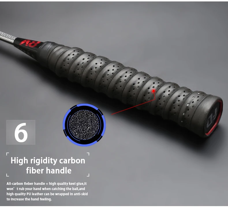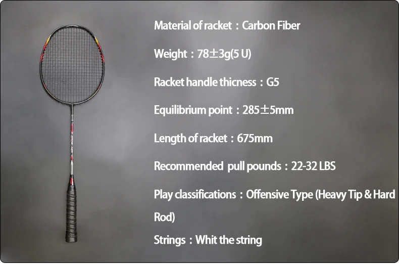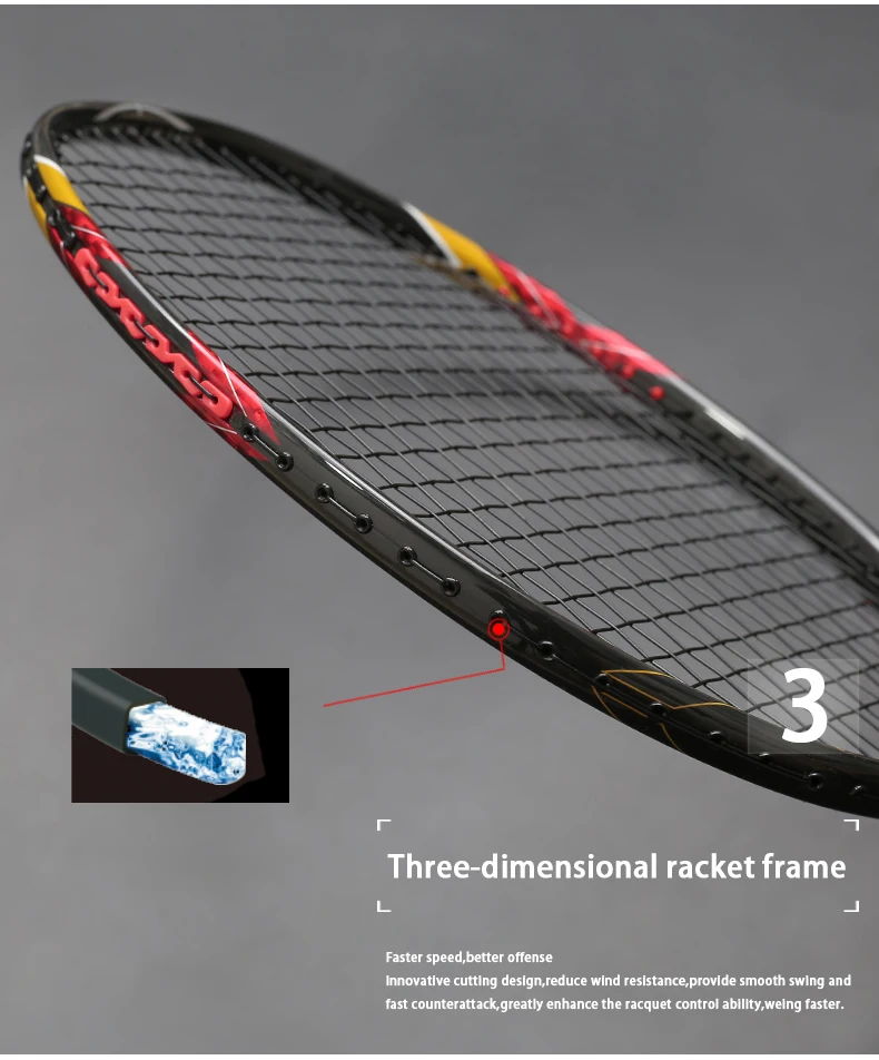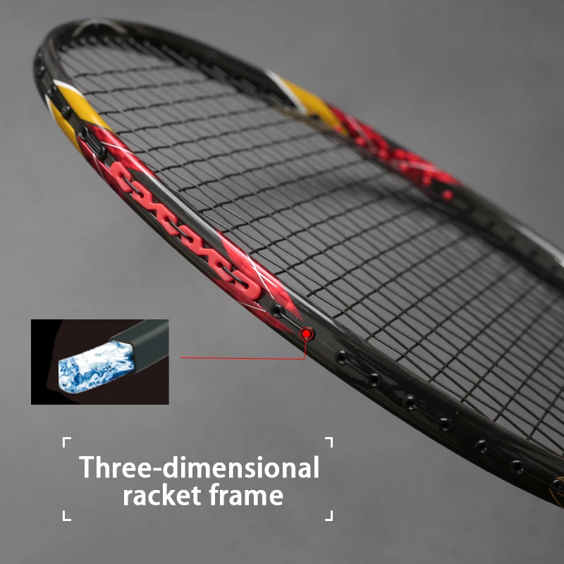 Углеродное волокно-он ракетка более легкая, но более сильная, поэтому напряжение может достигать 32 фунтов, подходит для начинающих и профессиональных игроков;