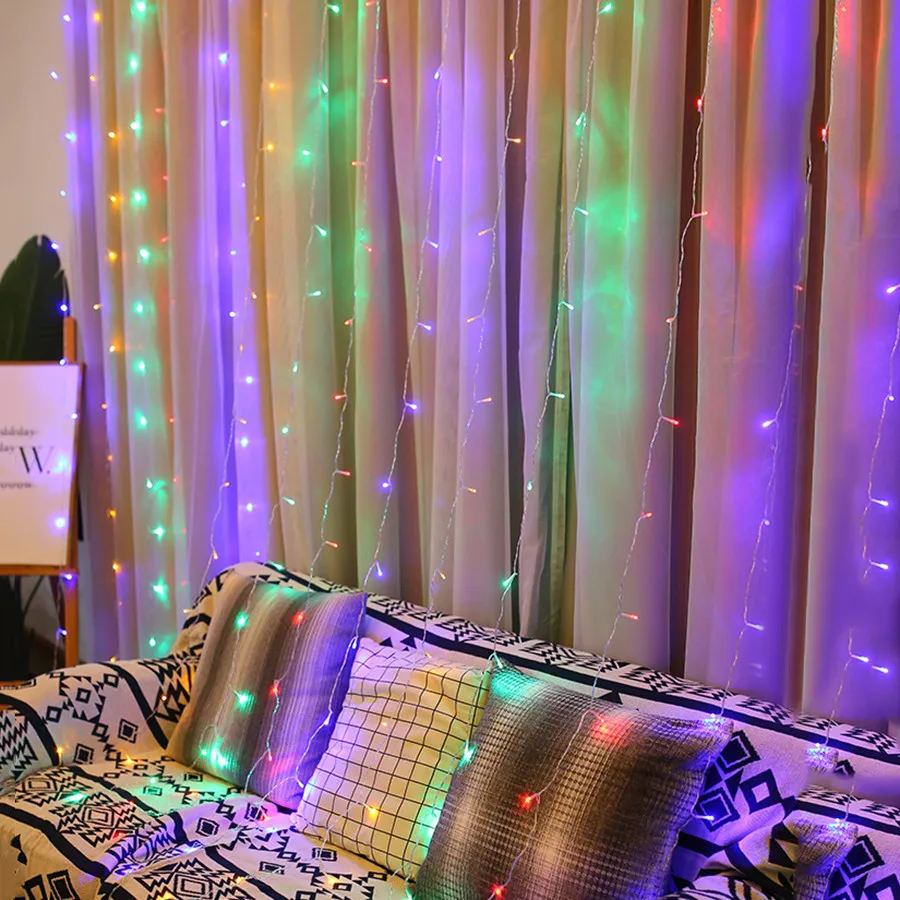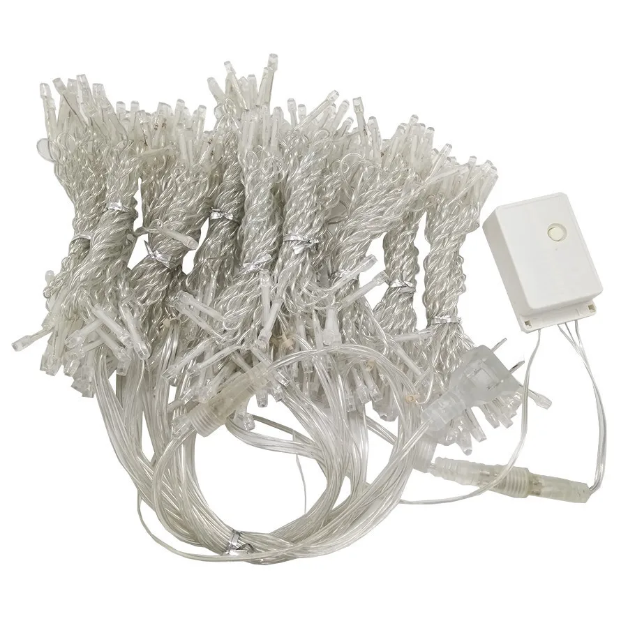 Цвет провода: прозрачный (прозрачный белый)Количество СВЕТОДИОДНЫЙ:4(W)x0.4-0,6 м (H) 96 светодиодов, 3(W)X1M(H) 120 светодиодов, 3(W)X2M(H) 240 светодиодов, 3(W) x3M (H) 300 светодиодов, 6(W)X3M(H)600 светодиодов
