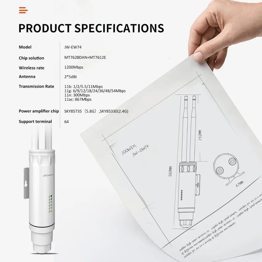 Wi-Fi-роутер JOOWIN уличный повышенной мощности, 1200 Мбитс, 2,4 + 5,8 ГГц