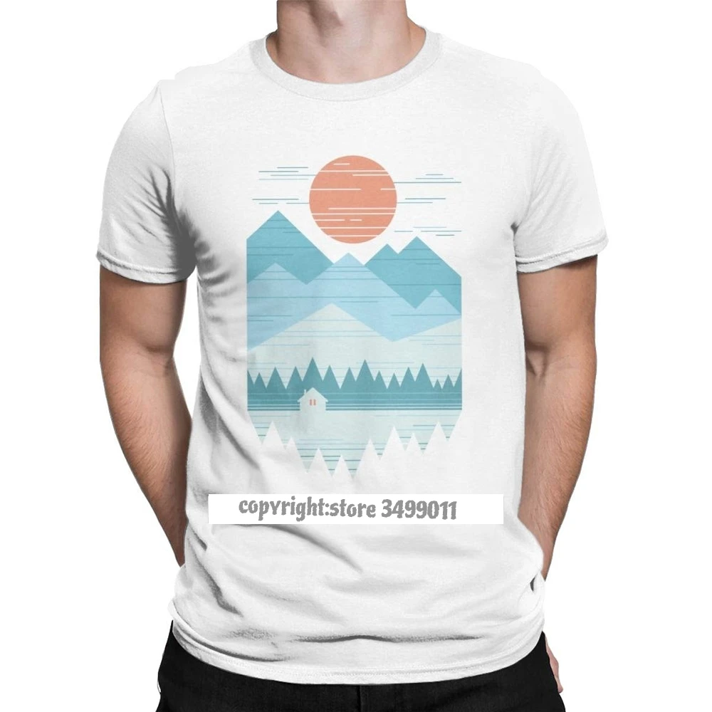 Футболка мужская с круглым вырезом, тенниска с надписью хижина в снегу, топ для горных походов, треккинга на открытом воздухе, кемпинга