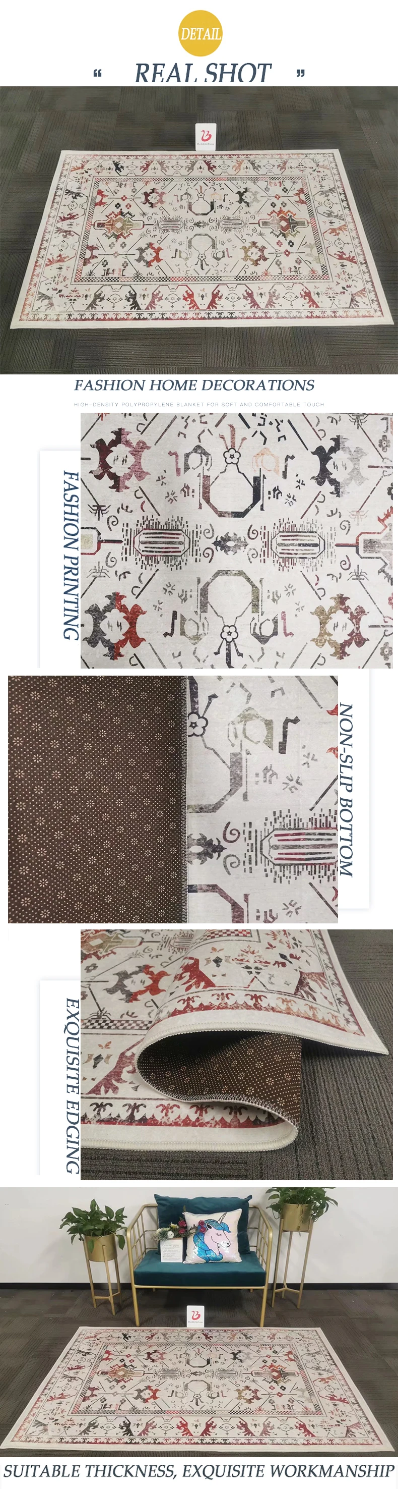 Уважаемые клиенты, наш производственный отдел недавно ввел белый кант для этого ковра. Общий эффект чище и красивее. Если вам нужны другие цвета для обрезки, пожалуйста, свяжитесь со службой поддержки клиентов перед оформлением заказа. По умолчанию используется белая окантовка.