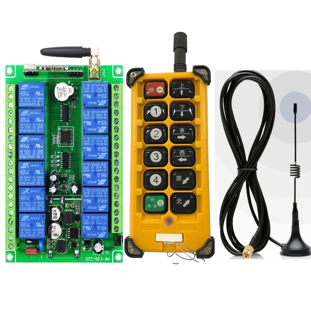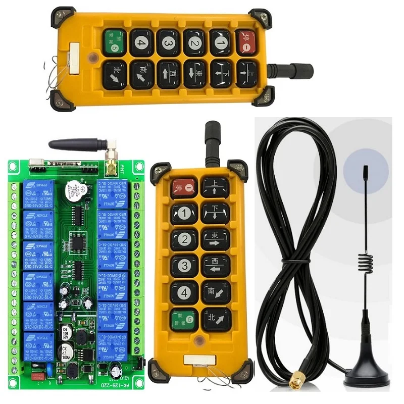 Промышленный радиочастотный беспроводной пульт дистанционного управления для мостового крана, приемник, присоска, антенна, 3000 м, 12 В, 24 В, 36 В, 48 В, 12 каналов