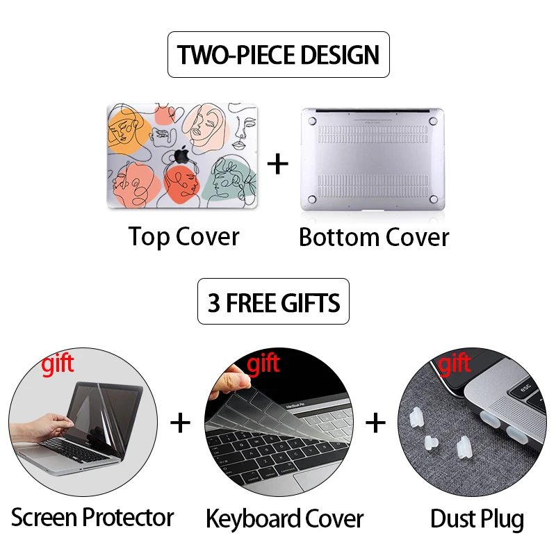 1 * чехол для Macbook (1 * Топ с принтом + 1 * Нижняя крышка)