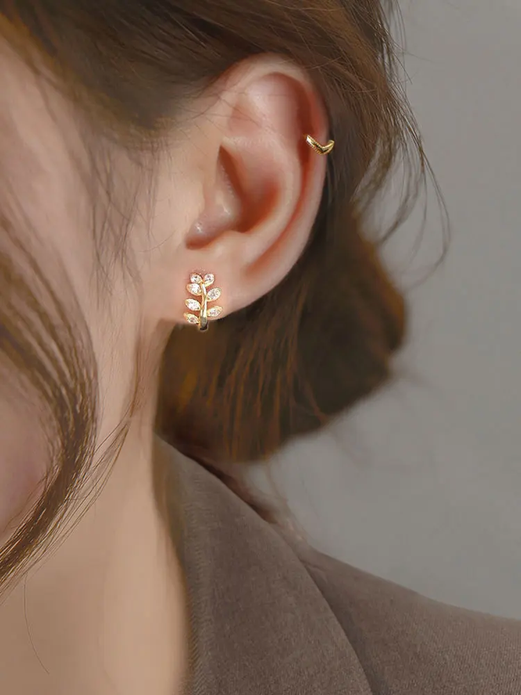 Женские серьги-гвоздики из стерлингового серебра 925 пробы в европейском стиле с венком из оливковой ветви и кристаллами ПАВЕ, Классические свадебные украшения