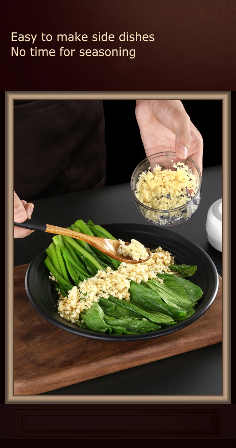 Два контейнера очень маленькие. Большой, чтобы порезать лук несколько раз, и маленький для чеснока, потому что это не дает гораздо больше. Мясорубка совсем не 50 грамм.