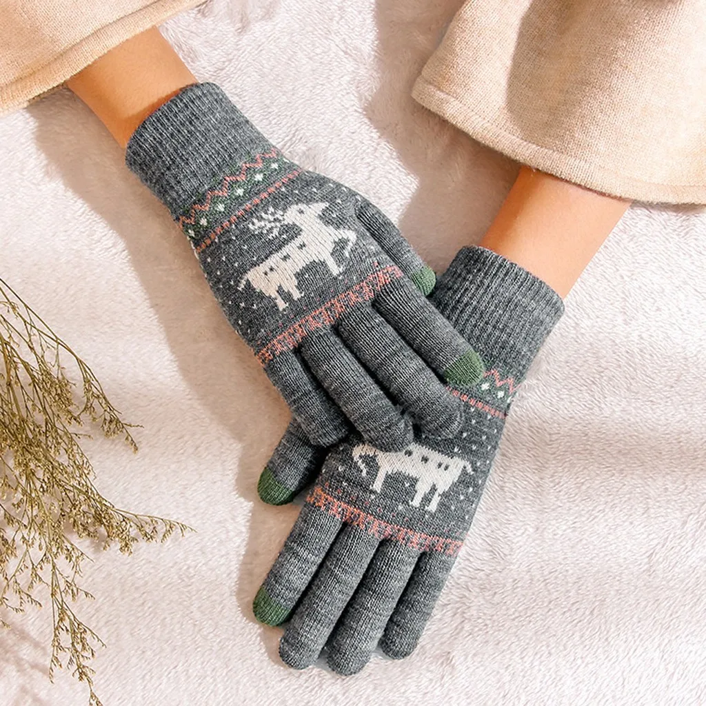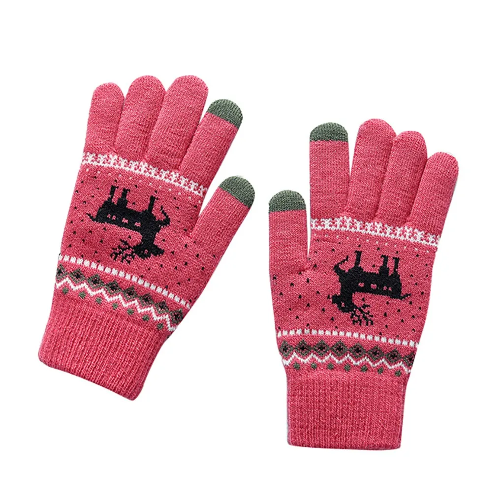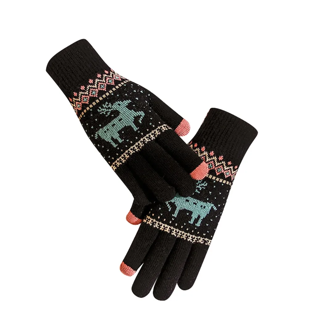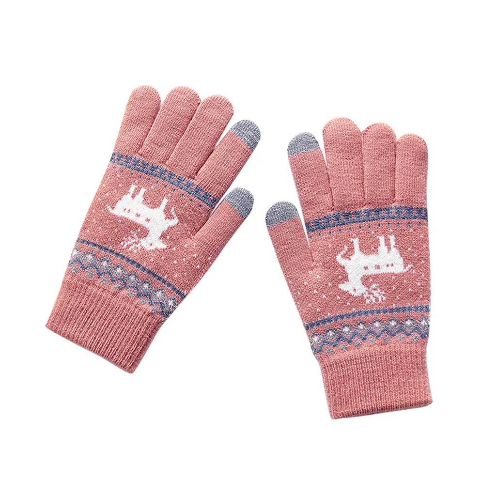 Женские утолщенные флисовые теплые перчатки на запястье с узором лосят 2020, функциональные варежки в стиле бохо для работы с телефоном, Недорогие варежки