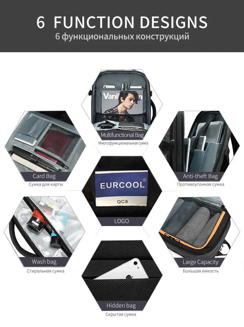Новинка 2020, дорожный рюкзак, мужской расширяемый Многофункциональный рюкзак 12 см, подходит для рюкзаков 15,6 дюймов, мужской n1811-X