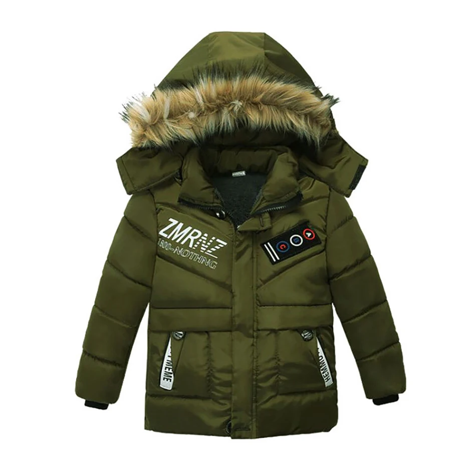 Зимняя теплая одежда с капюшоном для маленьких мальчиков, куртка-пу...