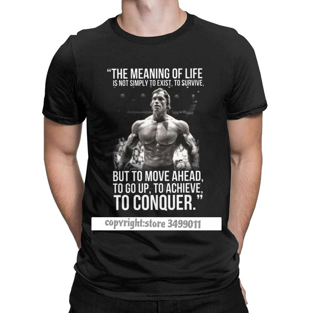 Мужская футболка с Арнольдом Шварценеггером Арни Покорите футболки со значением жизни, тренировка, подтягивание, бодибилдинг, топы для мышц, футболка