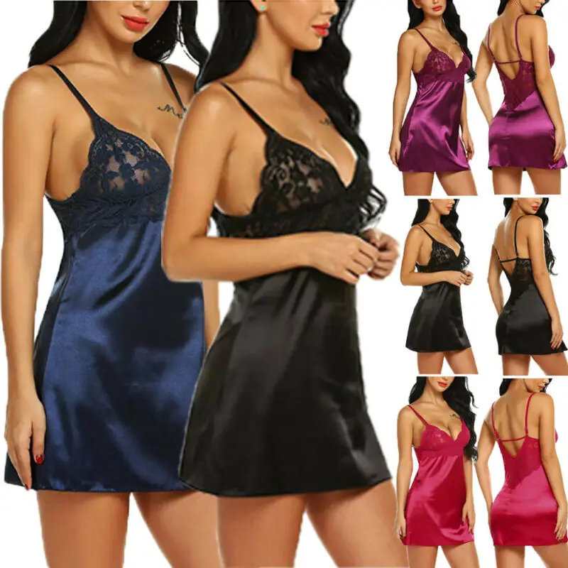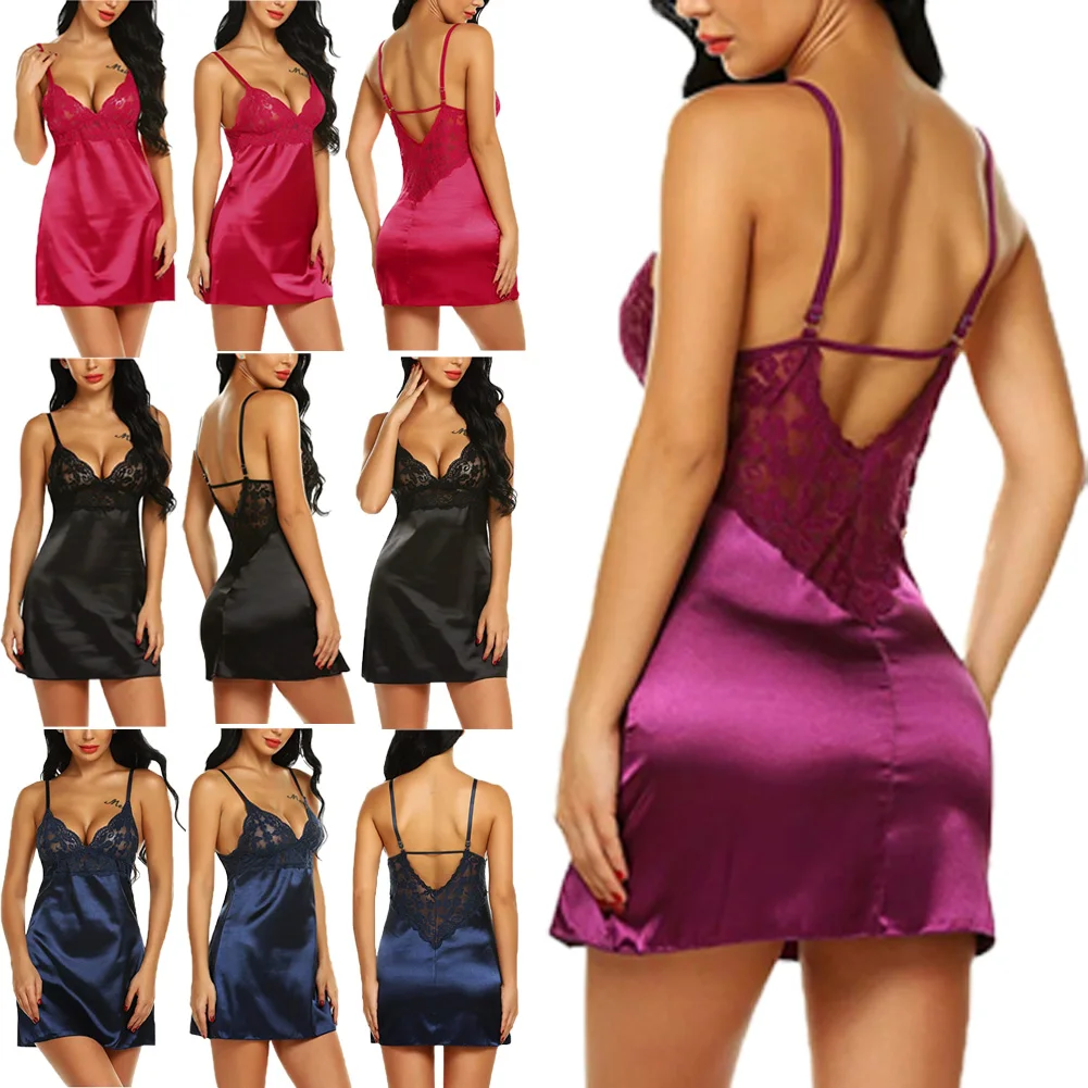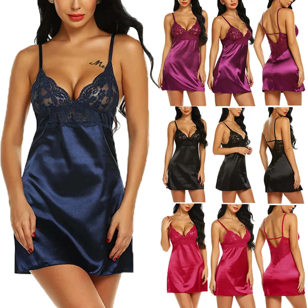 Женское модное сексуальное нижнее белье, одежда для сна, атласная шелковая комбинация, кружевная ночная рубашка, пижамный комплект, накидка на бикини, пляжная одежда