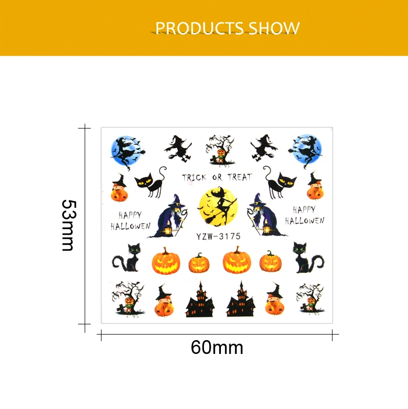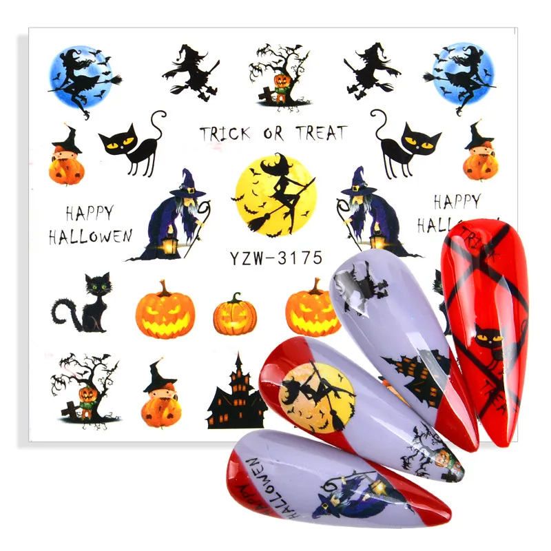 Милая кошка летучая мышь ведьма наклейка с тыквой дизайн ногтей водные тотосы слайдерысамоклеющаяся наклейка для ногтей стикер 3D Советы наклейки