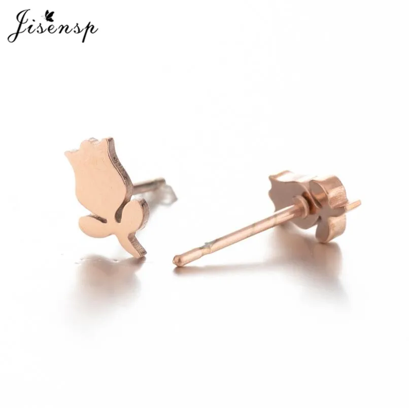 Jisensp Прекрасный тюльпан серьги гвоздики в форме минималистский серьги цветы для женщин из нержавеющей стали ювелирные изделия нержавеющей стали Mujer женские подарок для мамы