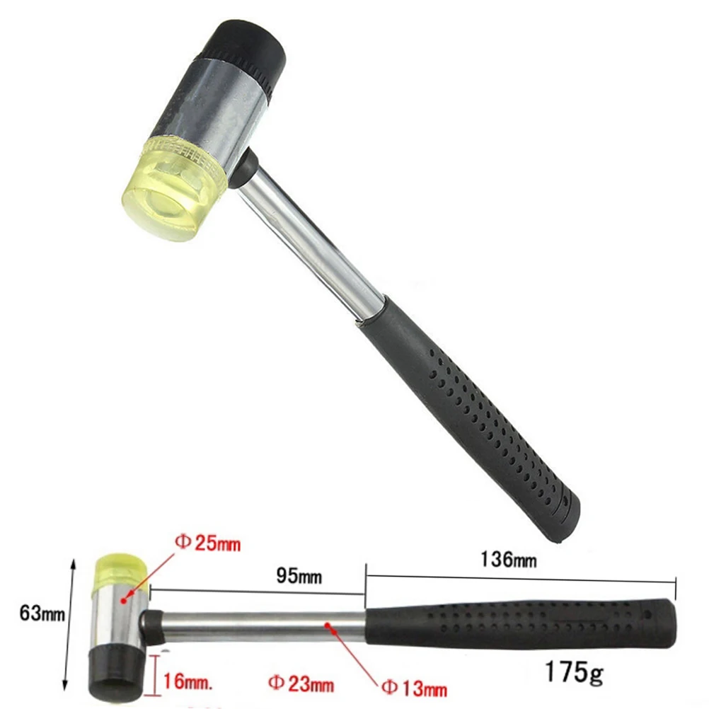 Спецификация:Абсолютно новыйМатериал: сталь + резина + пластик/нейлонЦвет: как на изображенииДиаметр молота: прибл. 25 ммДлина ручки молотка: прибл. 230 ммРучка изготовлена из высококачественной стали, с эргономичным дизайном, комфортным захватом, подходит для длительного использованияЧасть желтой головки молотка была использована из полиуретанового материала, мягкой и полупрозрачнойВ черной части используется высококачественная сталь, устойчивая к постукиванию, противоскользящая, противомасляная, молоток можно заменить, чтобы удовлетворить ваши различные требованияПосылка включает в себя:1 шт. резиновый молотокПримечание:Измерения выполнены вручную, возможна погрешность в 1-5 мм