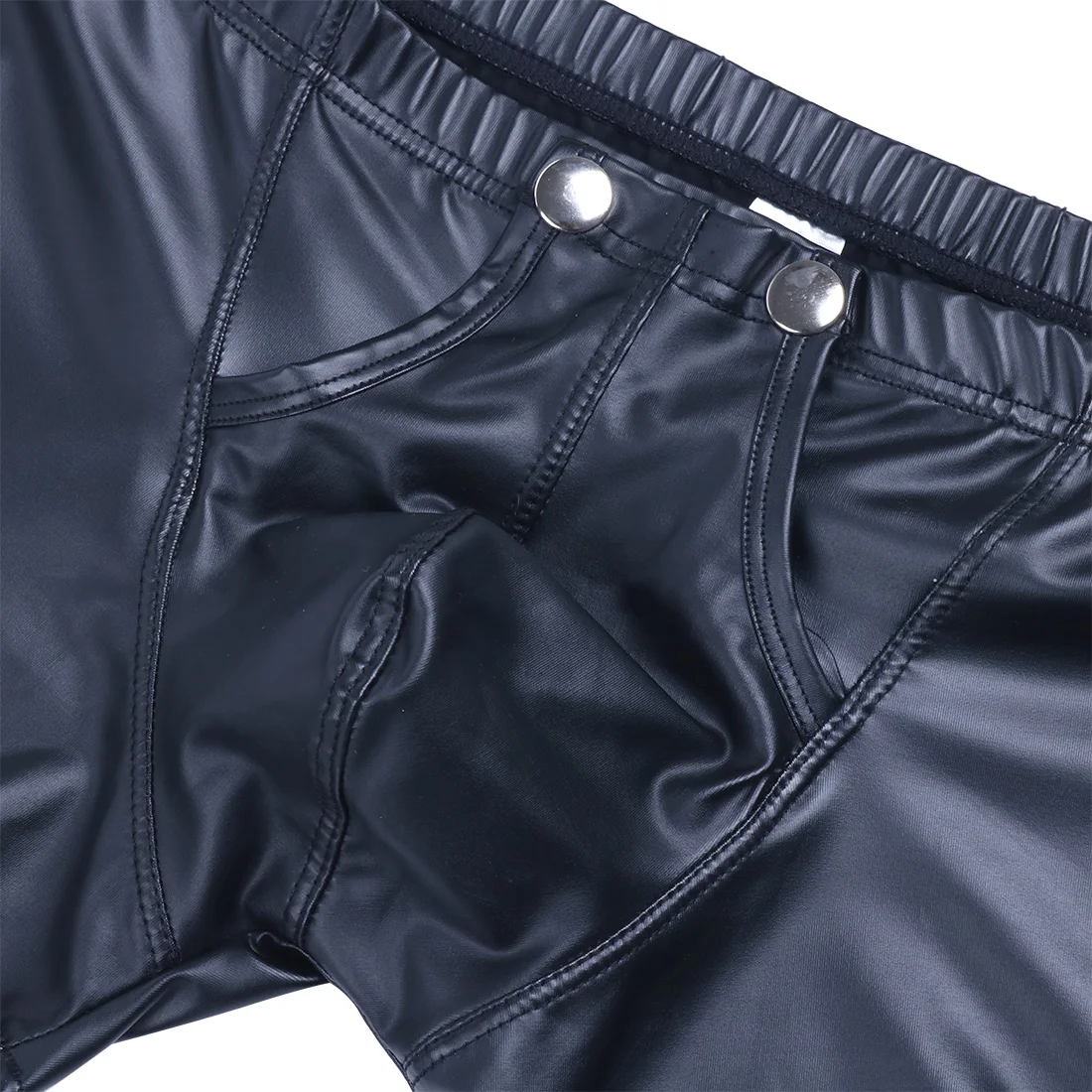 Сексуальное мужское нижнее белье, шорты из искусственной кожи, трусы, нижнее белье, нажимная кнопка с пуговицами, с пуговицами, мужское нижнее белье, ночное белье, клубная одежда