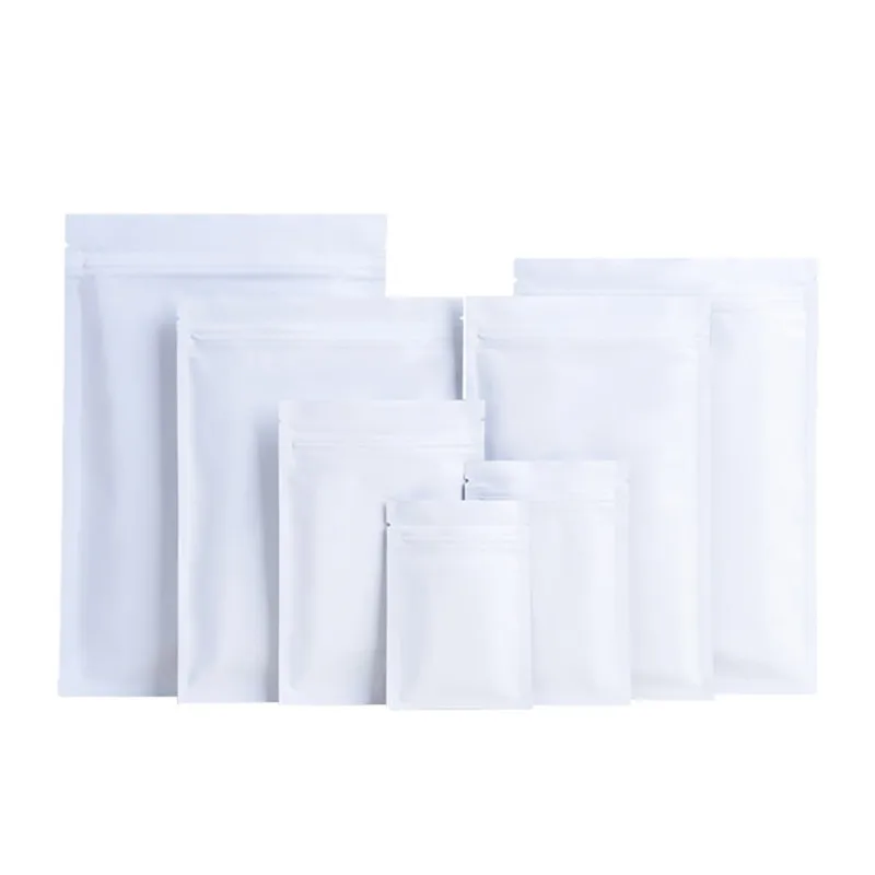 Закрывающийся 100 шт плоская подошва матовая белая алюминиевая фольга с замком на молнии сумка термогерметичная капсула порошок для ногтей блестящая специя соль мешочки