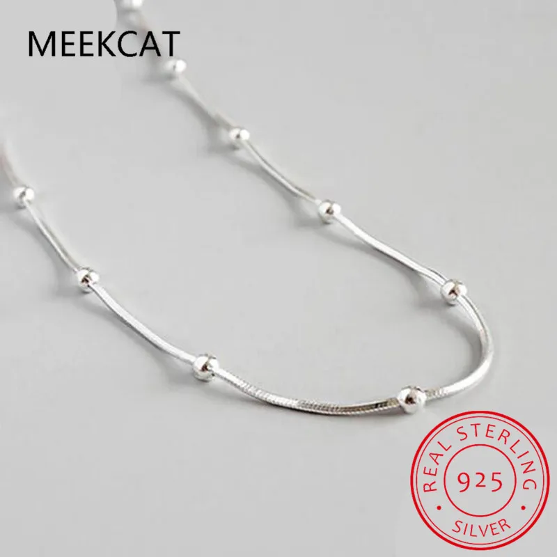 Цепочка-змейка женская из серебра 925 пробы, 2 мм, с бусинами, 2020