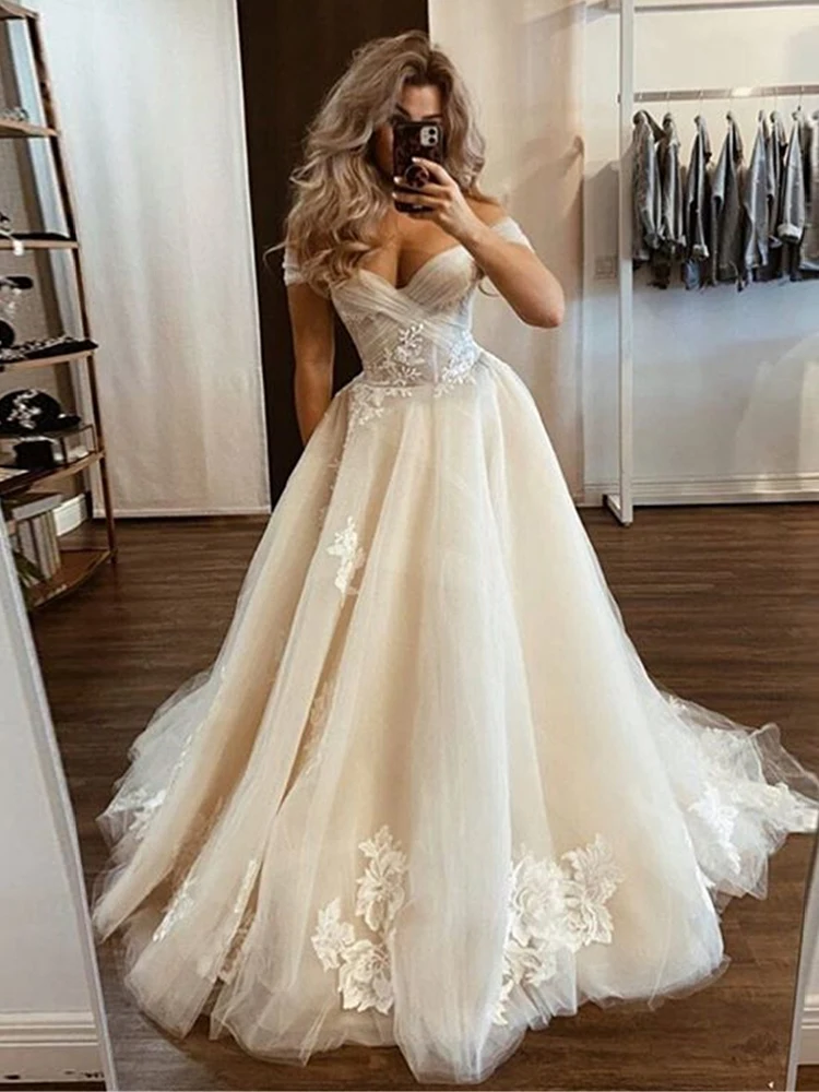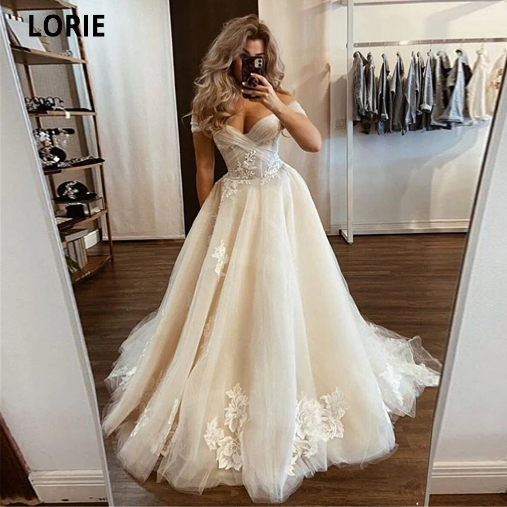 Свадебные платья с открытыми плечами LORIE 2020, кружевные платья с открытой спиной и аппликацией из тюля, пляжные свадебные платья, платье для деревенской вечеринки