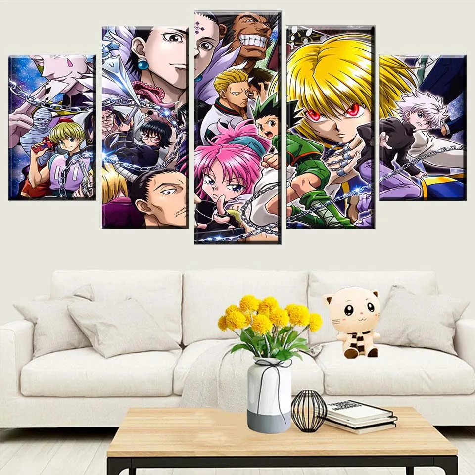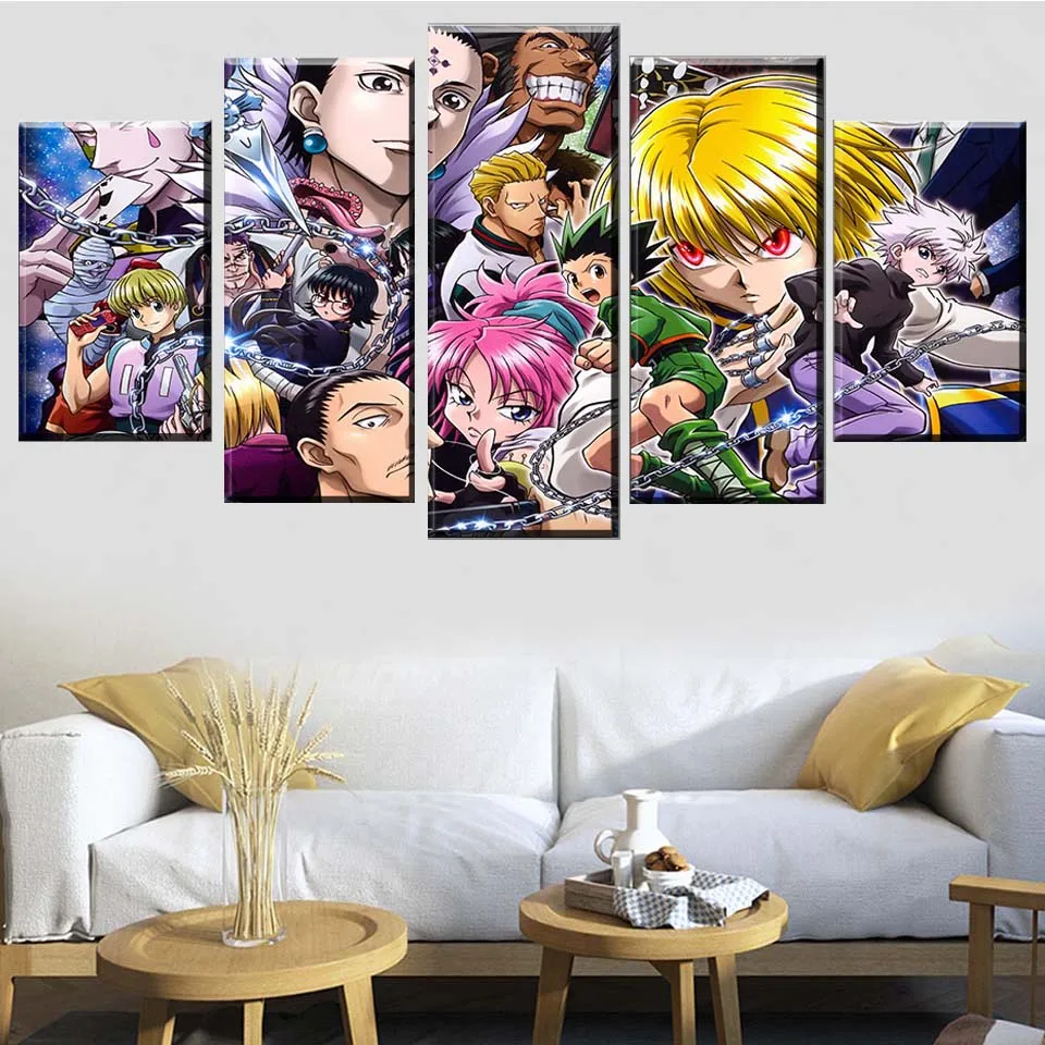 Картина с рисунком на холсте, 5 шт., охотник x Hunter, аниме, японское семейное украшение, модульный постер, Настенная рамка для гостиной