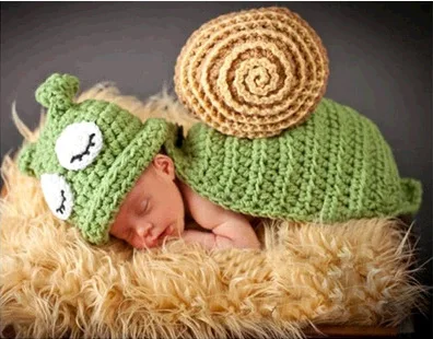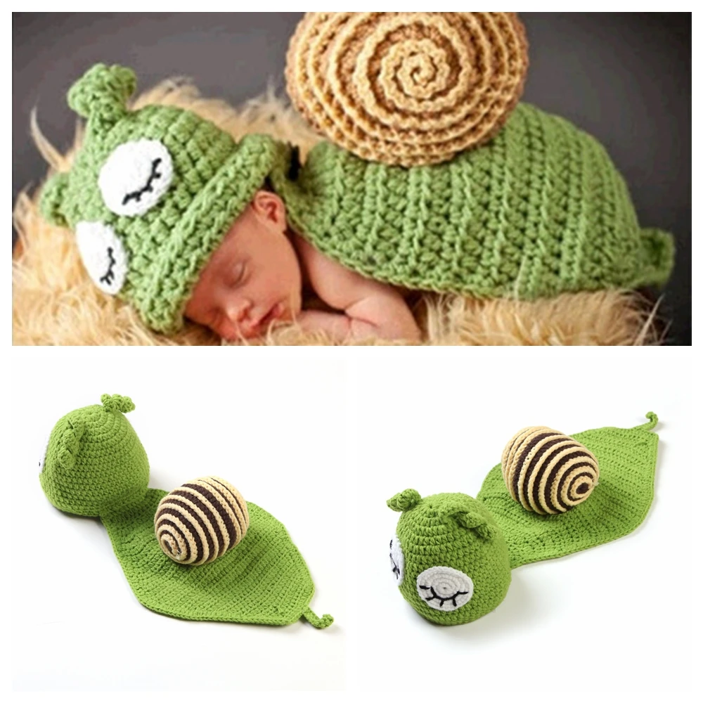 Милые детские вязанные зеленые комплект из улиток для новорожденных ручной вязки одежды для фотосессии, мягкие высокого качества, Детский костюм, платье для детей