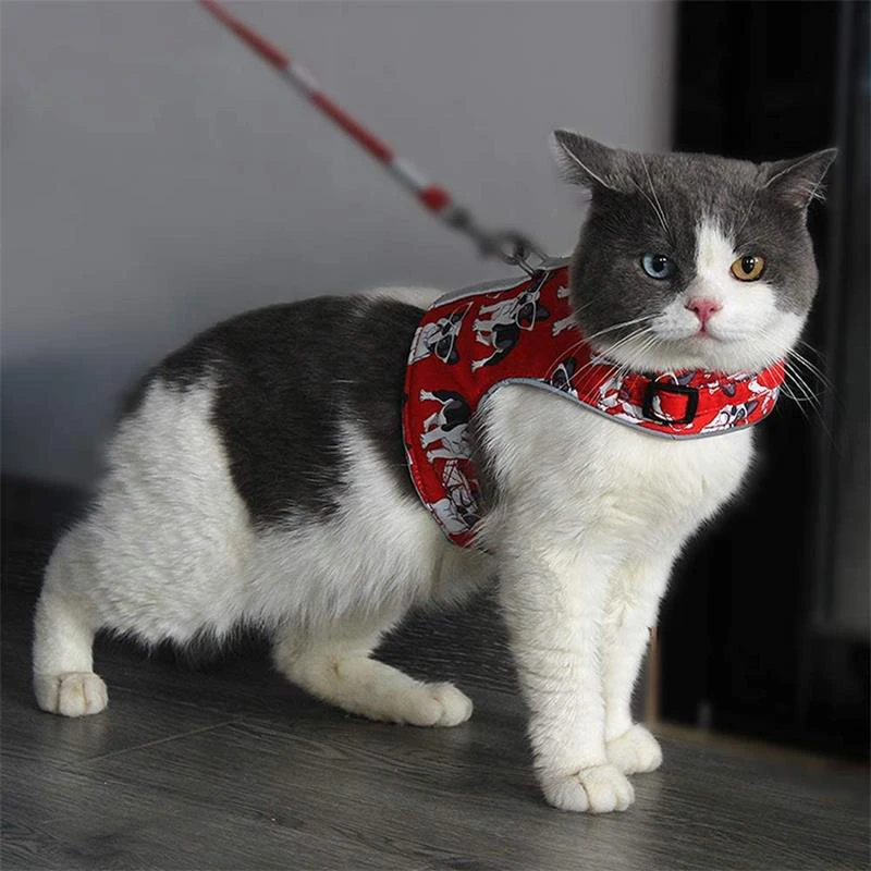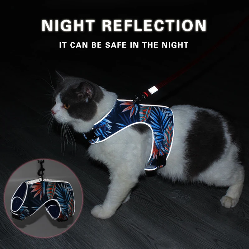 Шлейка с поводком для кошек, комплект из дышащего светоотражающего ...