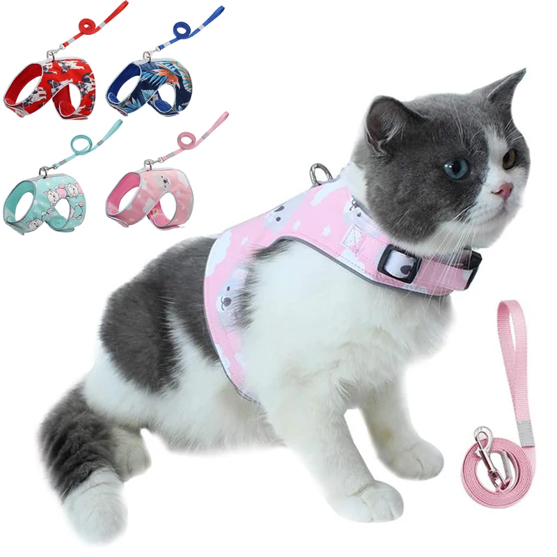 Сетчатая шлейка для кошек, дышащий жилет с принтом, нагрудный ремен...
