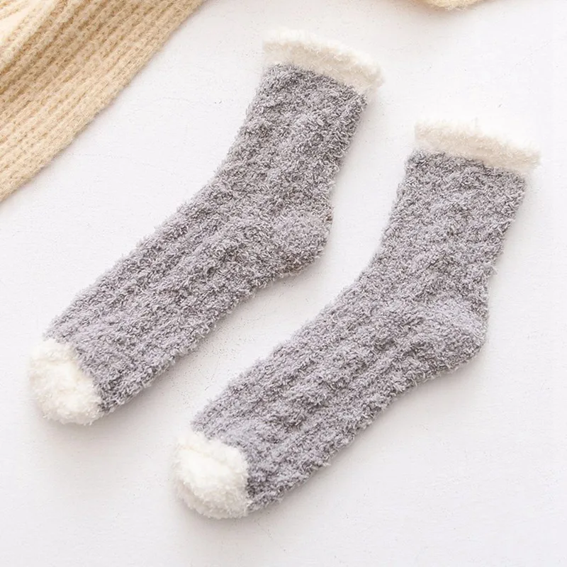 Женские зимние теплые пушистые носки, милые мягкие эластичные корал...