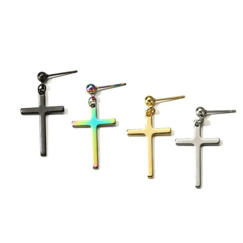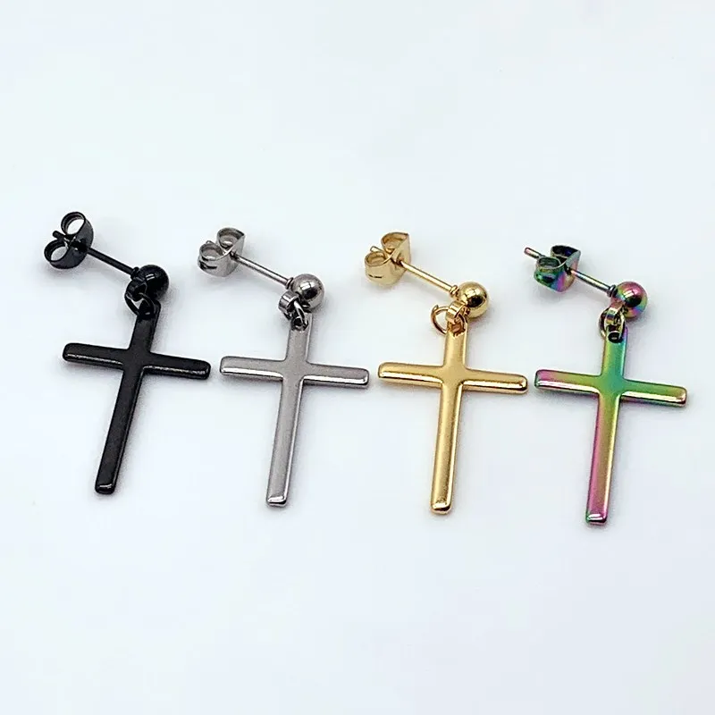1 шт. минималистичные Висячие серьги Huggie с крестом, пирсинг, висячие серьги для мужчин и женщин, Красочные Модные Искусственные серьги из нержавеющей стали