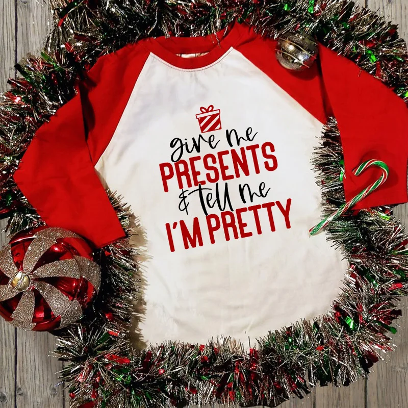 Рождественские детские футболки с длинным рукавом реглан для малыше...