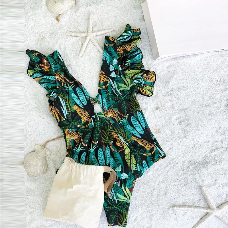 2022 сексуальный слитный купальник с принтом, купальник с оборками,...