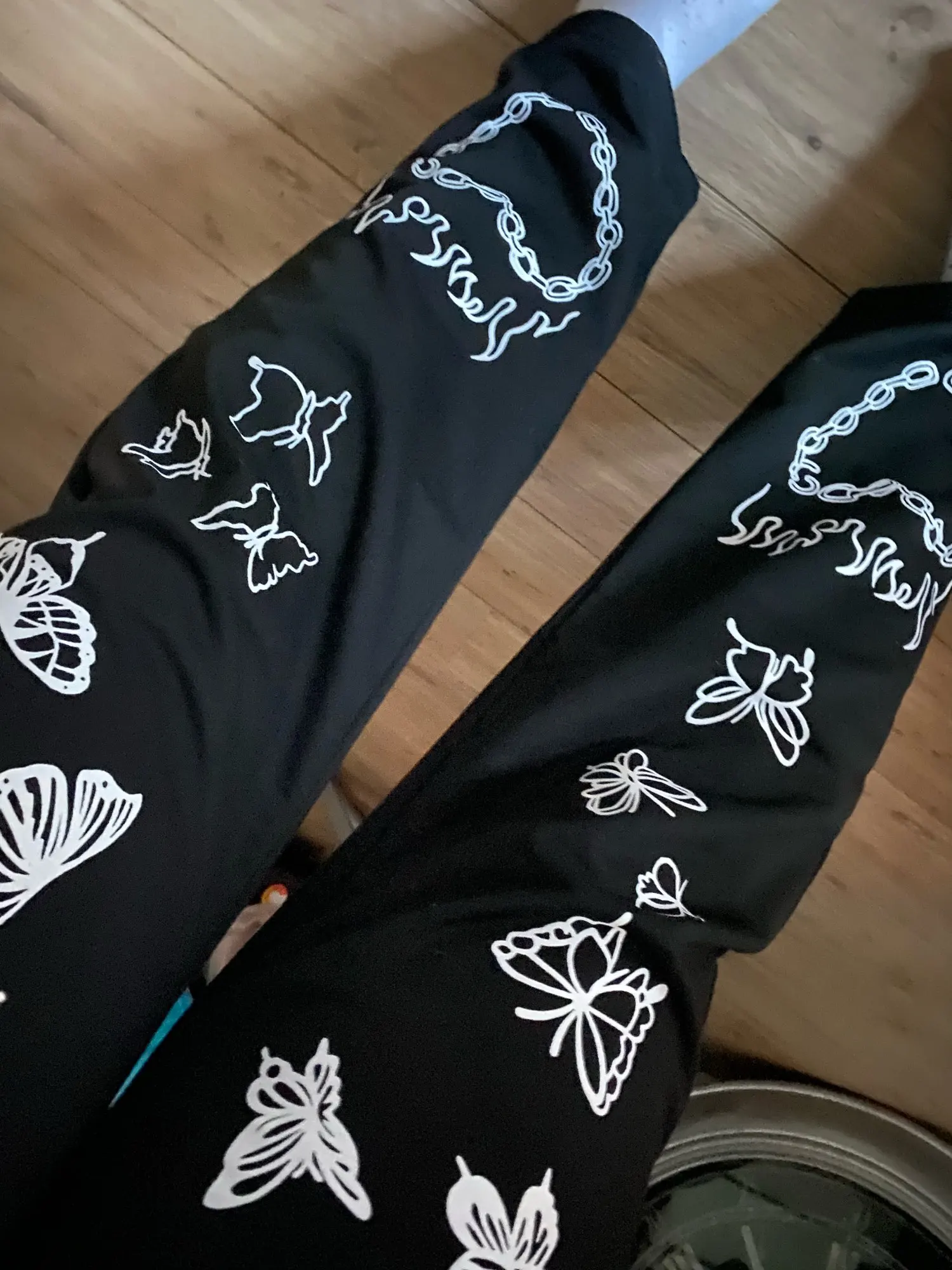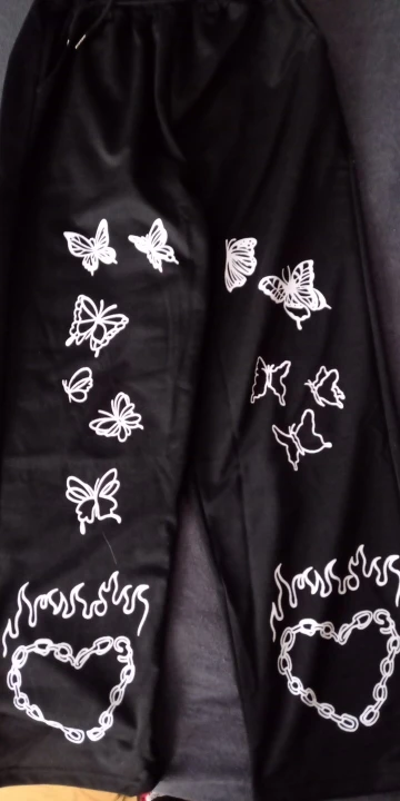 Заказала размер L на рост 170, подошло идеально. Принт наклейка, на бёдрах сидит хорошо. Штаны тонкие, но есть не большой подклад. Ткань плотная (трикотаж)