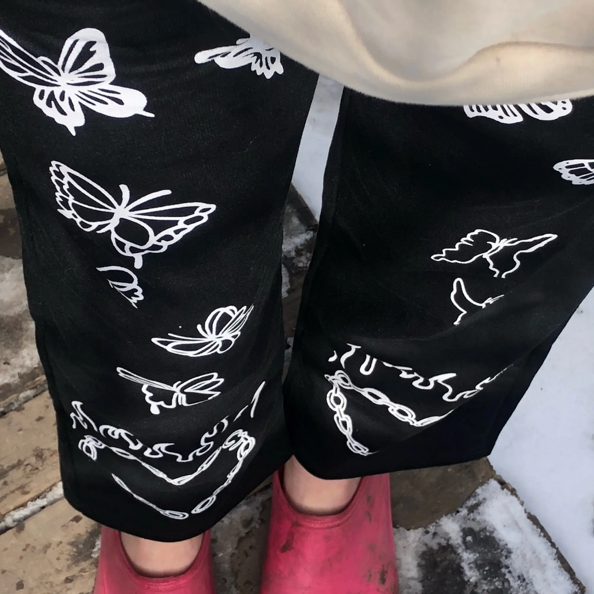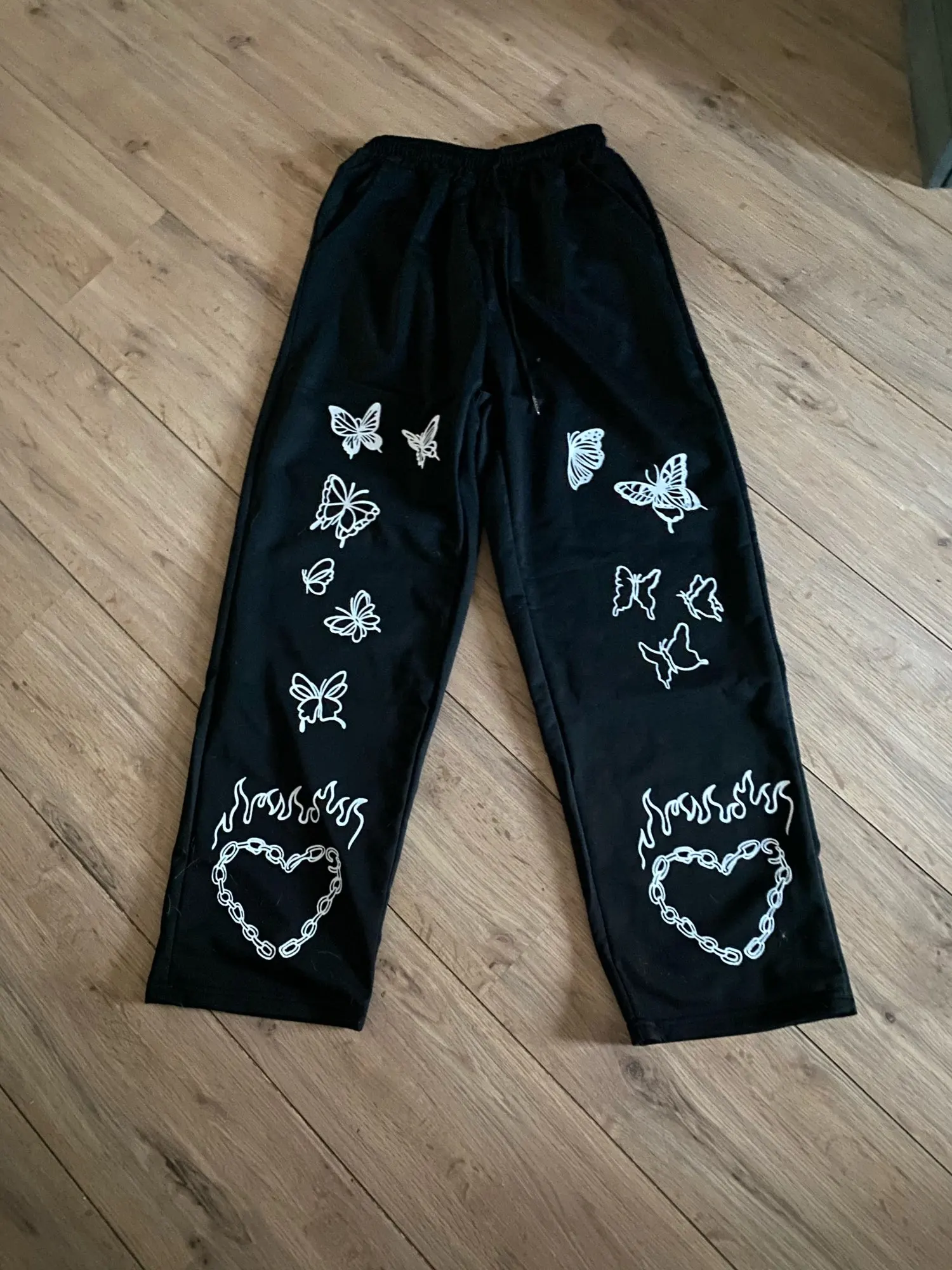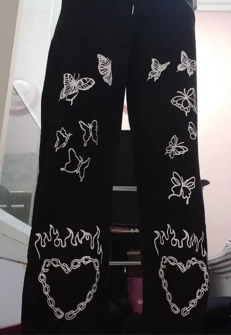 Они такие милые! Я 5'6 и получил большой, потому что я хотел, чтобы они были очень мешковатыми, и они очень удобные, принт действительно хороший и не чувствую, что он оторвется. Я получил серые, и они такие хорошие, качество