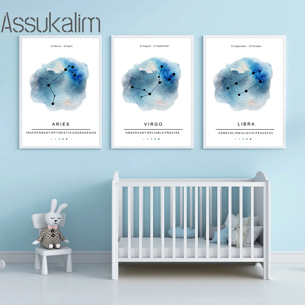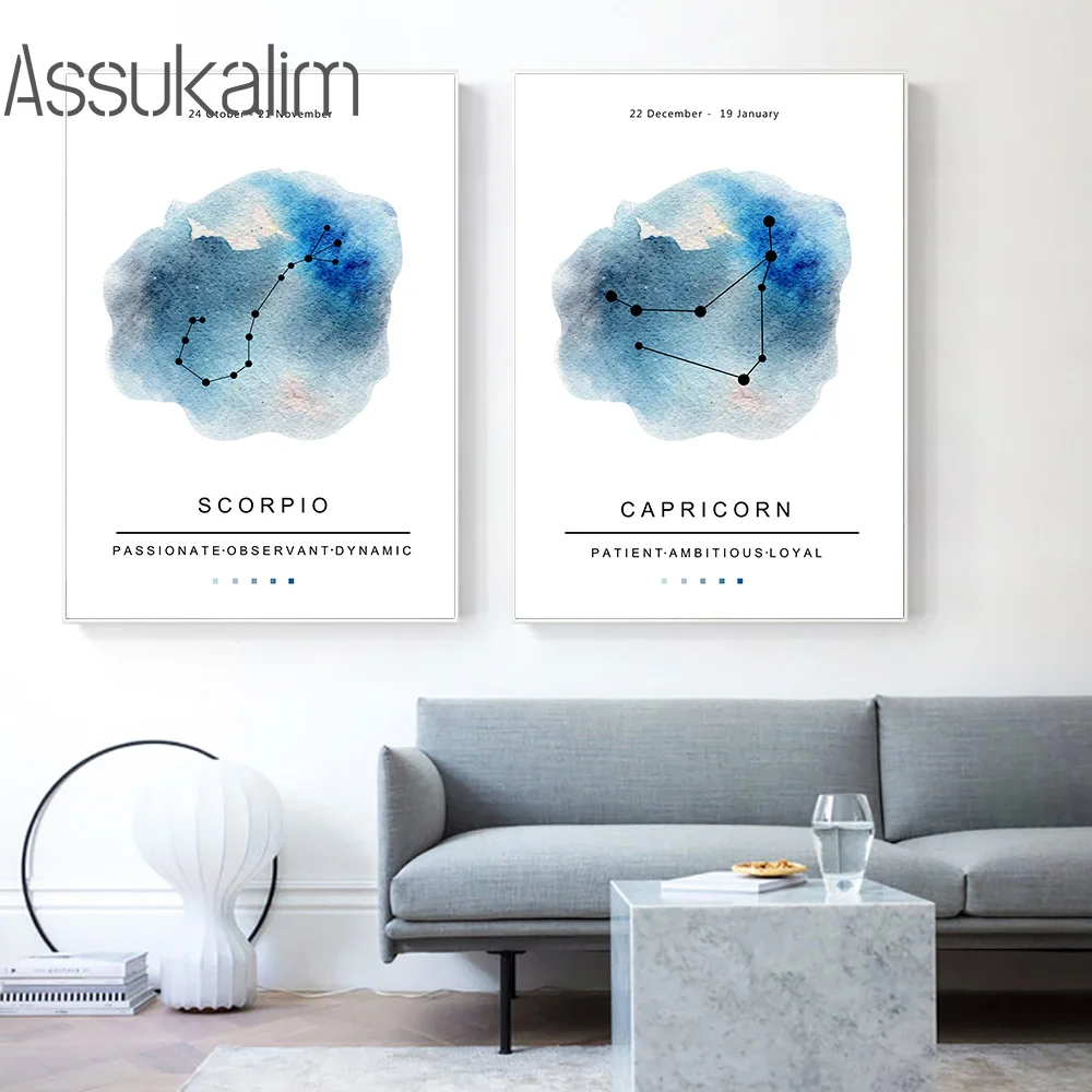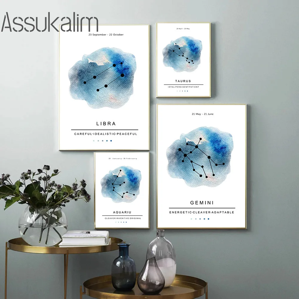 Созвездия настенная живопись Зодиак астрологический знак Печать на холсте цитаты принты синие плакаты картины украшение для спальни
