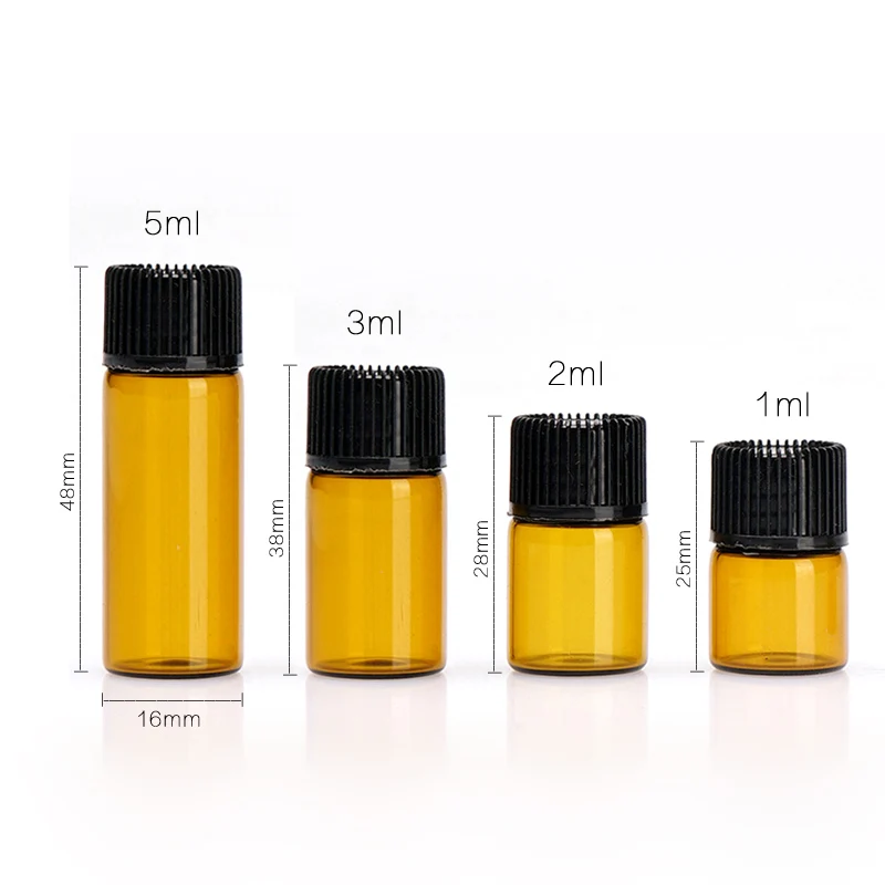 50 шт., флакон из янтарного стекла с пластиковой крышкой, 1 мл, 2 мл, 3 мл, 5 мл