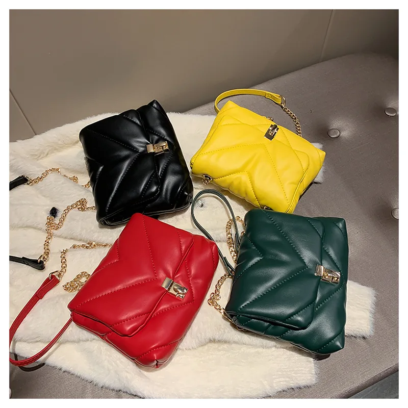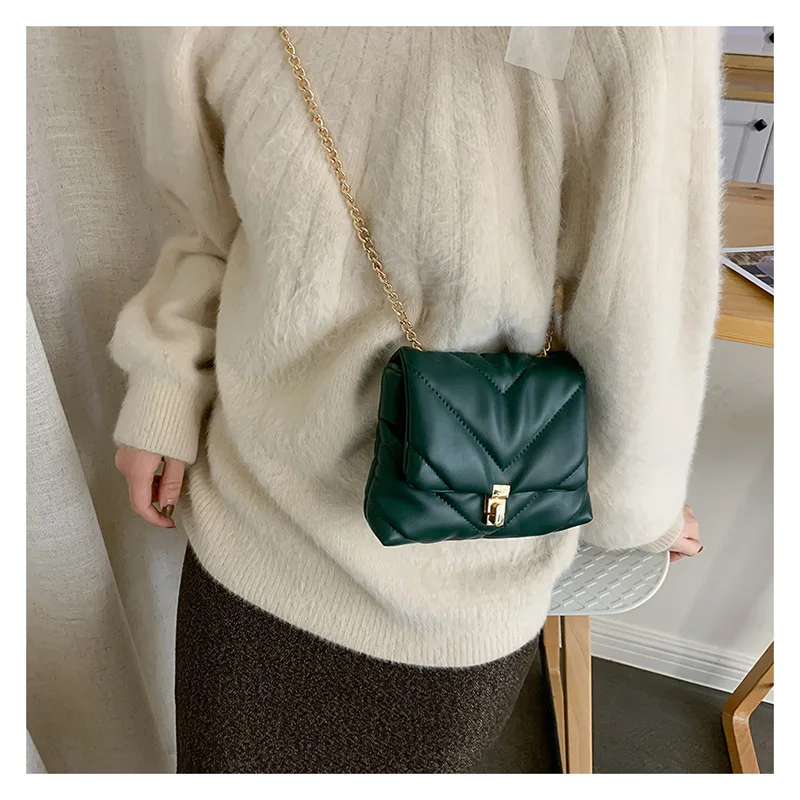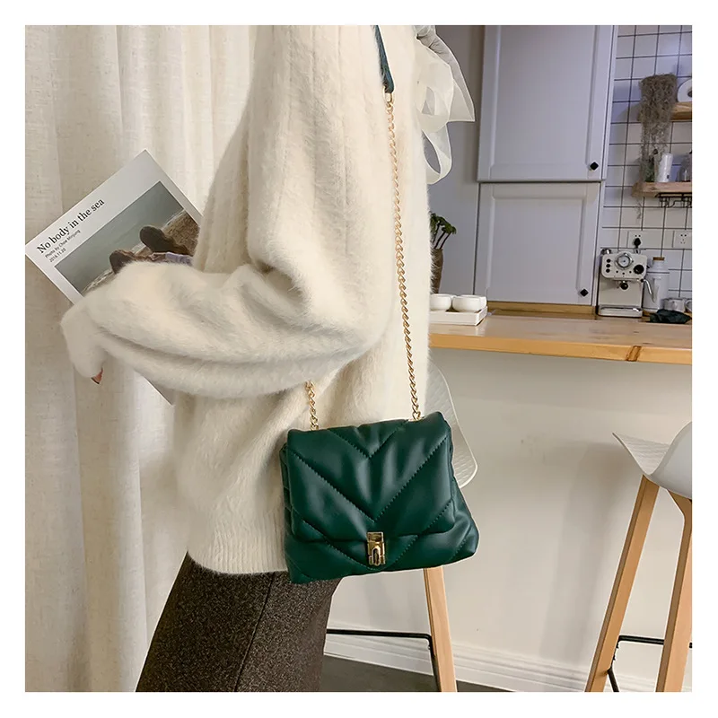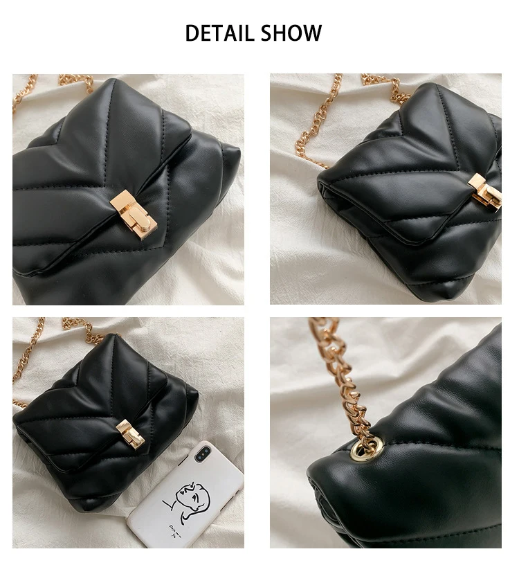 Женская Стеганая сумка из искусственной кожи, с клапаном и цепочкой, с V-образным вырезом
