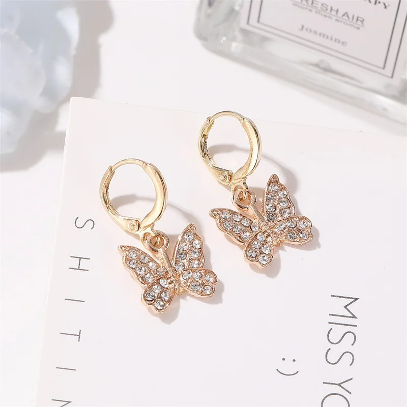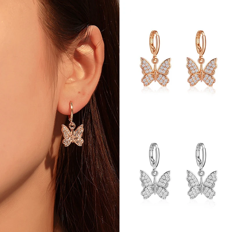 Универсальные женские простые серьги Стразы в форме бабочки аксессу...