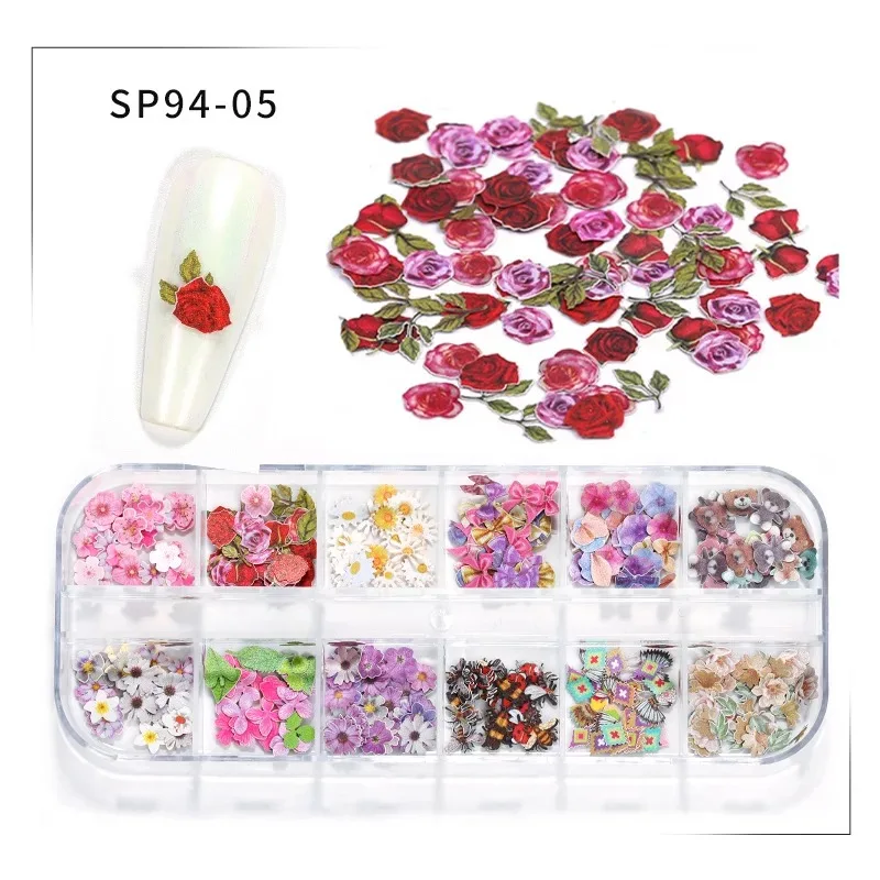 1 коробка 12 решетки листа древесины Nail Art Украшение бабочка Цвет подошве с мелким цветочным рисунком Рождества и Хеллоуина 3D Блестки для нейл Арта (искусство украшения ногтей)